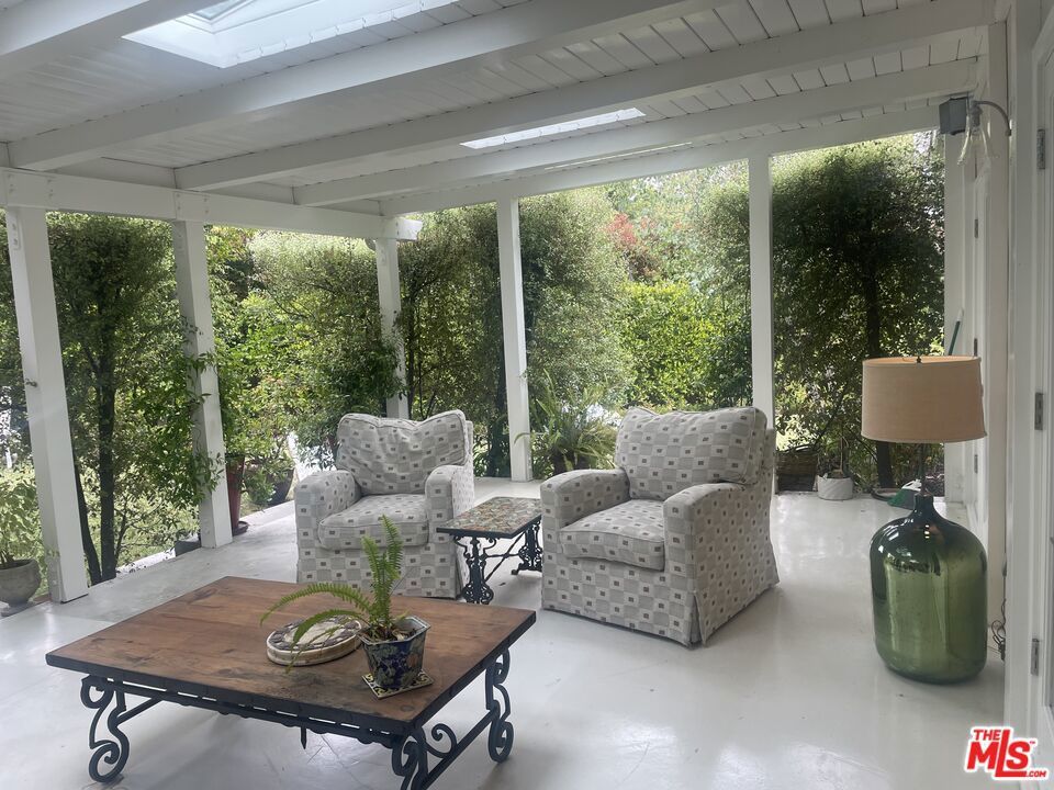 Quintessential Brentwood home. Light, bright, hedged indoor-outdoor living on a private lane. 3-bedroom, 2.5-bath. Wonderfully lush and private, as well as light-filled. Green views through each window and French door. Single-story ranch. Miele, Sub-Zero, Bose, appliances. Walker Zanger stone, Ann Sacks baths to name a few quality features. Long private drive with multiple parking spaces and a charge outlet for an electric car. Exceptional and vast covered veranda with a fireplace and skylights for lounging, working out, or working from home. Most discriminating private clients will love to be home here. DO NOT DISTURB OCCUPANTS...BY APPOINTMENT ONLY