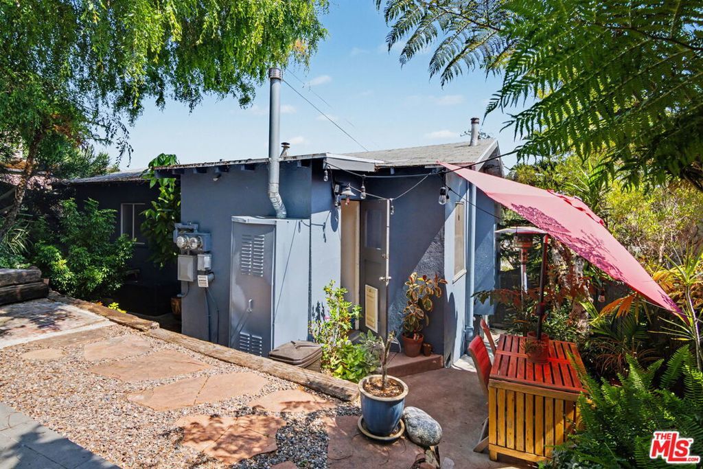 Set within a lush, garden-filled setting, this distinctive property blends classic California bungalow charm with flexible living and thoughtful design. The front residence is a beautifully maintained 1-bedroom, 1-bath bungalow surrounded by mature landscaping that creates a private, serene retreat. Warm wood floors, curated interiors, and an easy indoor-outdoor flow define the home, with multiple outdoor areas designed for both quiet living and relaxed entertaining. At the rear, a detached open floor-plan loft guest house offers a light-filled and versatile secondary living space. Vaulted ceilings with exposed beams and a lofted sleeping area create an open sense of volume, while the main level living area and kitchen provide functionality and flexibility. Ideal for guests, rental income, or a creative live/work environment. A detached office shed adds further flexibility, well-suited for work-from-home or studio use. The property backs to the historic Corralitas Red Car Trail, with nearby informal parking and direct gated access into the backyard. Layered outdoor spaces shaded by mature trees and thoughtfully composed to enhance the property's sense of privacy and connection to nature, creating a relaxed, compound-like feel. Ideally positioned near the best of the eastside, with convenient access to major freeways, Sunset Boulevard, the Silver Lake Reservoir, Echo Park Lake, and a curated mix of cafes, restaurants, and boutique shops. Los Feliz, Atwater Village, Glendale and Downtown LA are all within easy reach. A rare opportunity to own a character-rich property with versatile living options in one of Los Angeles' most sought-after neighborhoods. Parking on Riverside Place is limited. For open house visits please use the Google Maps link to park at the rear of the property. https://goo.gl/maps/Jeah9wUGZUTvxEYZ8 for ample parking at the rear of the property on the Corralitas Red Car Trail.