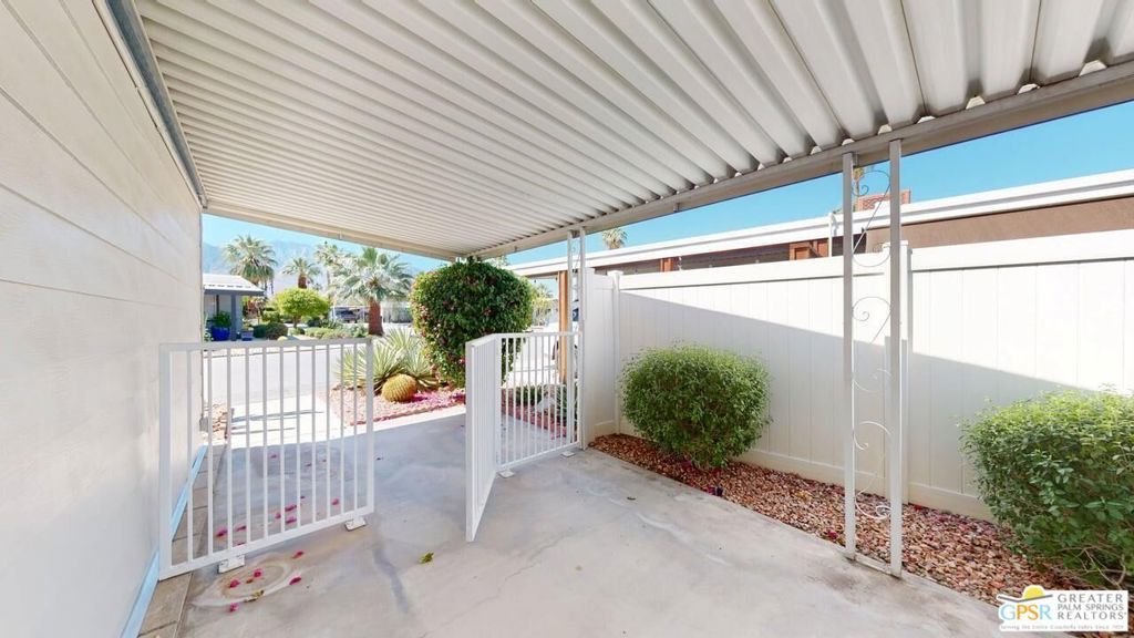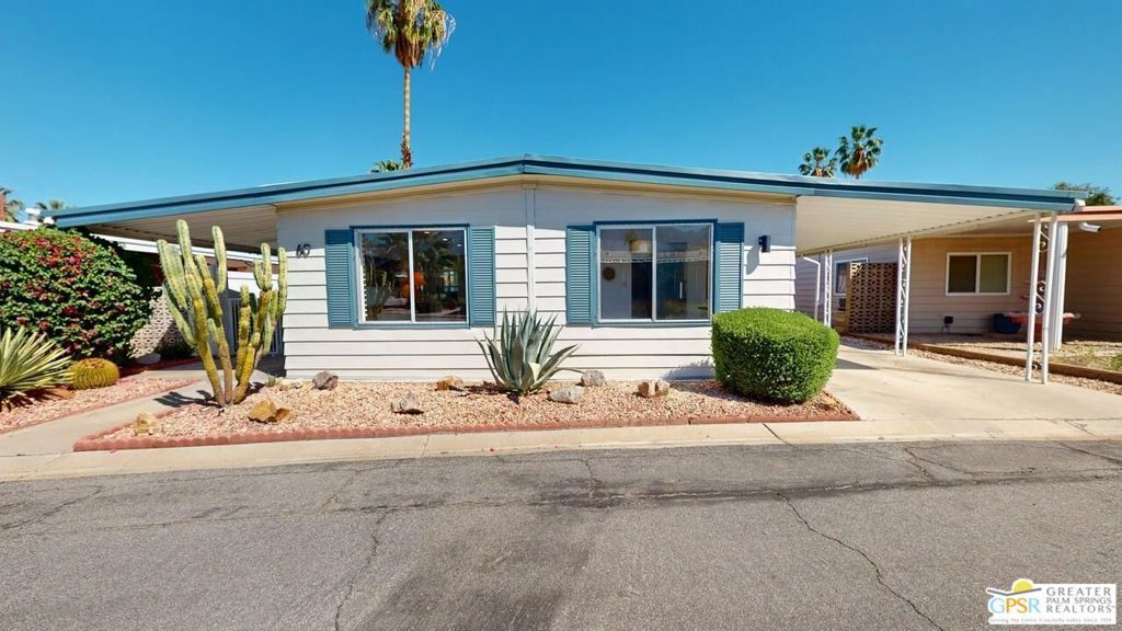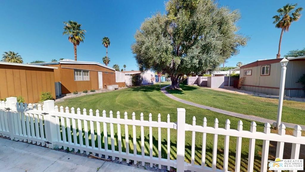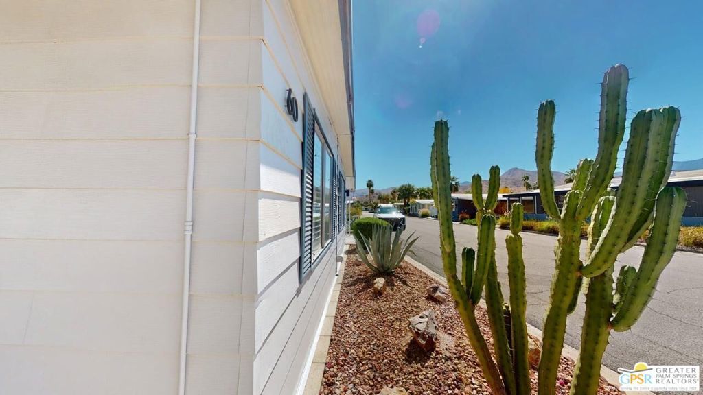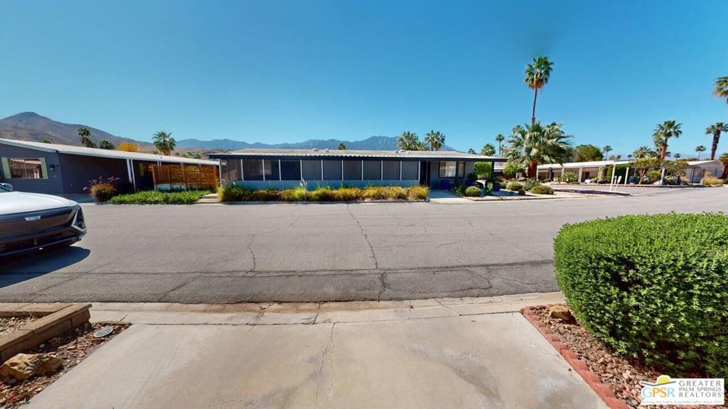 With Stunning Views of Mt. San Jacinto from the Living Room and Dining Room, this 2 Bedroom 2 Bath home has been nicely renovated. Currently used as an Artist's "Studio", this 1248sf home is ready for it's next adventure. Keep it as an Artist's "Studio" or use it as a residential property. The home features custom Plantation Shutters and plenty of public and personal spaces. The fenced patio features the wonderful view of Mt. San Jacinto as well. The home includes an in-unit stackable washer and dryer and Ceiling Can lights throughout, which add to the light and airy feeling of this great home. The monthly space rent includes a Clubhouse, 3 pools, water, trash and sewer. Palm Springs View Estates is conveniently located near Trader Joe's, Target, Bart's Bar and the new Eagle Bar to be opening in 2026. There are plenty of restaurants, golf and entertainment, especially at the Cathedral City Agua Caliente Casino and The Roost Bar. Palm Springs View Estates is a 55 plus community. Buyers must have park approval to close escrow. Contact the park manager for more details.