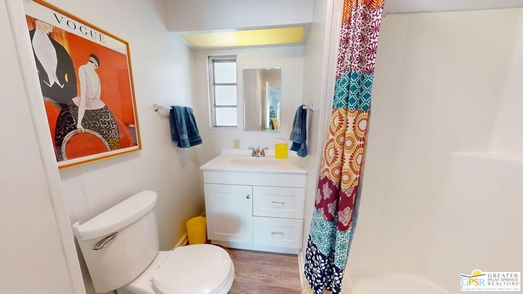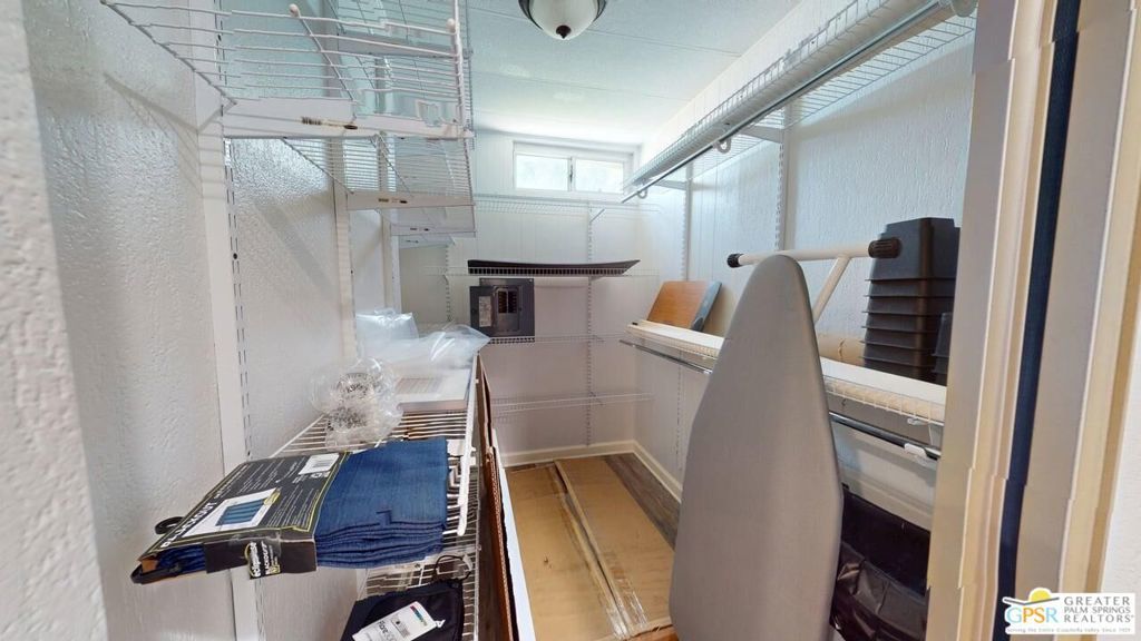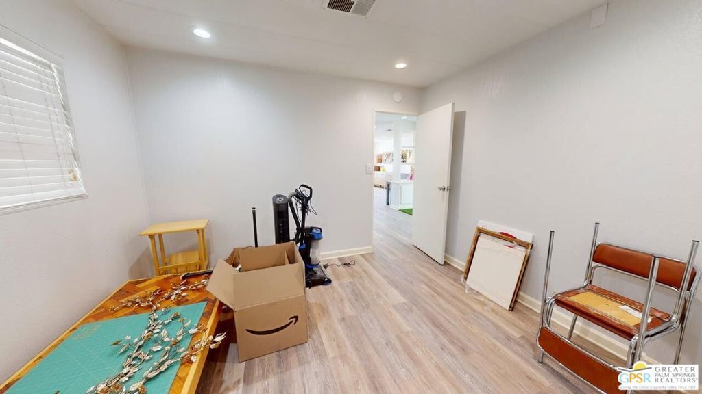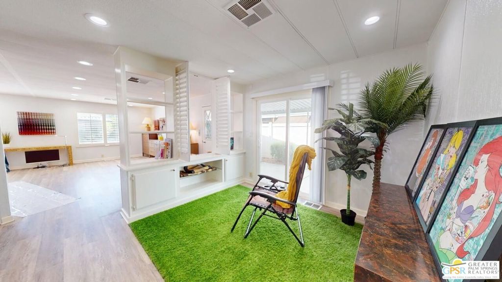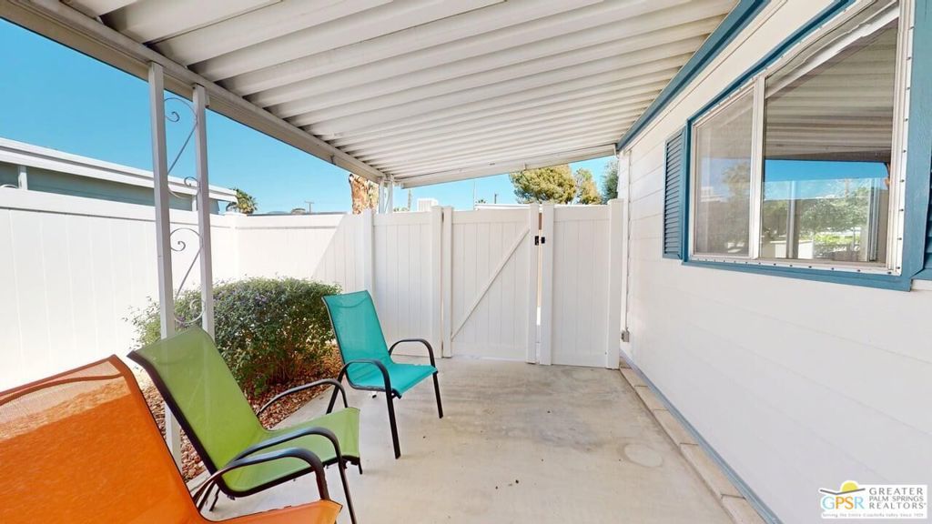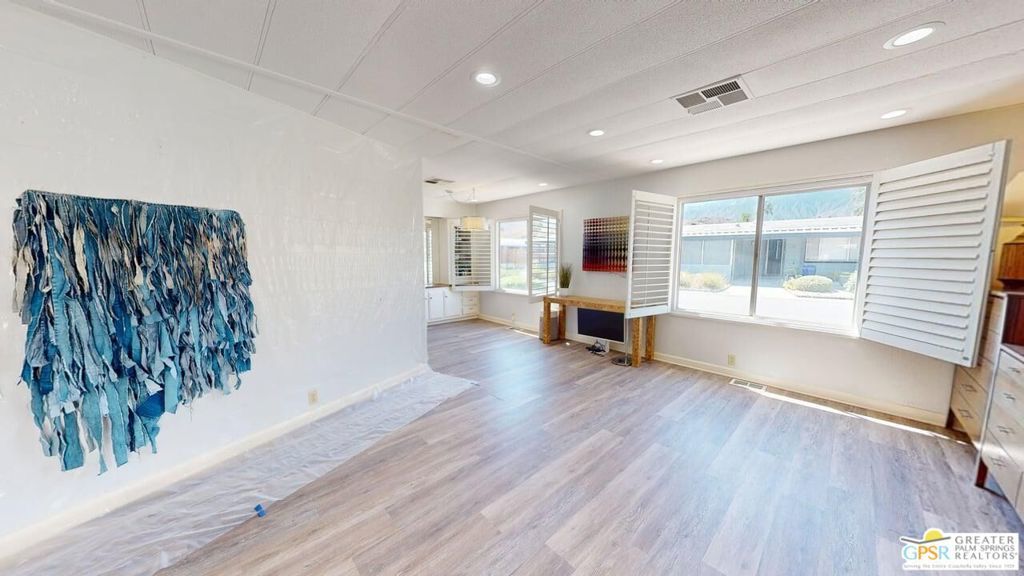 With Stunning Views of Mt. San Jacinto from the Living Room and Dining Room, this 2 Bedroom 2 Bath home has been nicely renovated. Currently used as an Artist's "Studio", this 1248sf home is ready for it's next adventure. Keep it as an Artist's "Studio" or use it as a residential property. The home features custom Plantation Shutters and plenty of public and personal spaces. The fenced patio features the wonderful view of Mt. San Jacinto as well. The home includes an in-unit stackable washer and dryer and Ceiling Can lights throughout, which add to the light and airy feeling of this great home. The monthly space rent includes a Clubhouse, 3 pools, water, trash and sewer. Palm Springs View Estates is conveniently located near Trader Joe's, Target, Bart's Bar and the new Eagle Bar to be opening in 2026. There are plenty of restaurants, golf and entertainment, especially at the Cathedral City Agua Caliente Casino and The Roost Bar. Palm Springs View Estates is a 55 plus community. Buyers must have park approval to close escrow. Contact the park manager for more details.