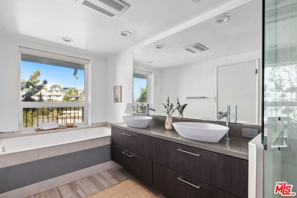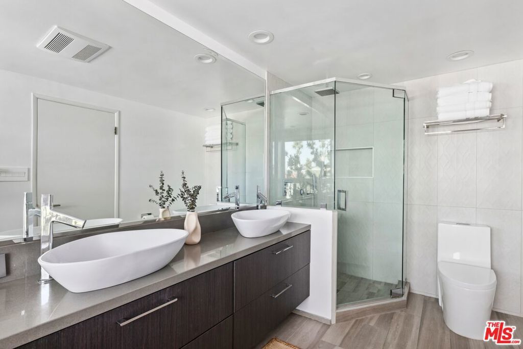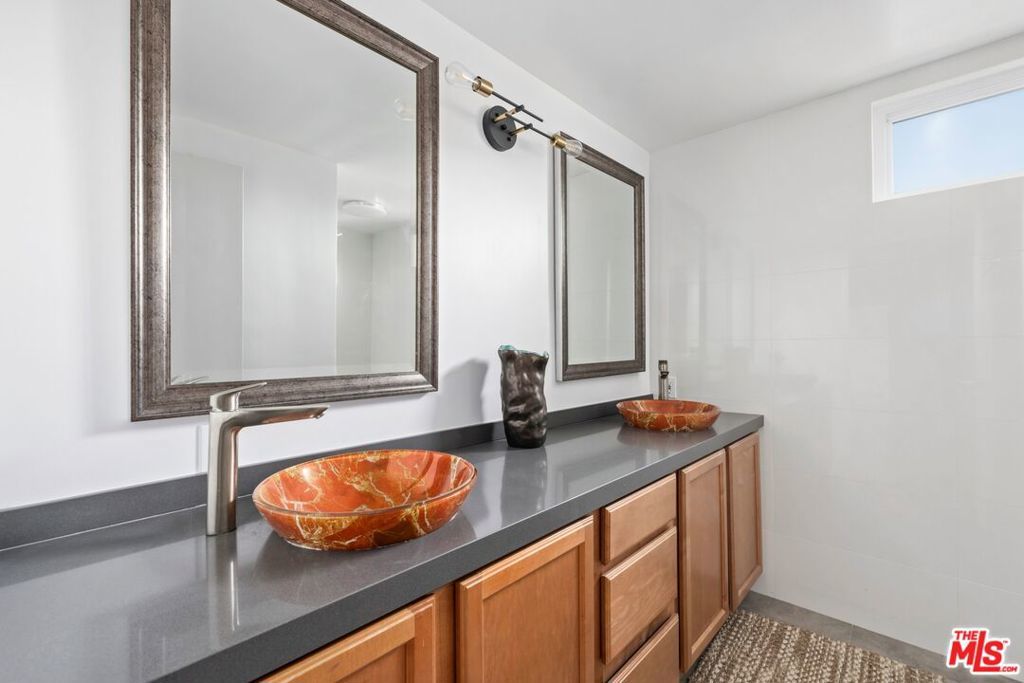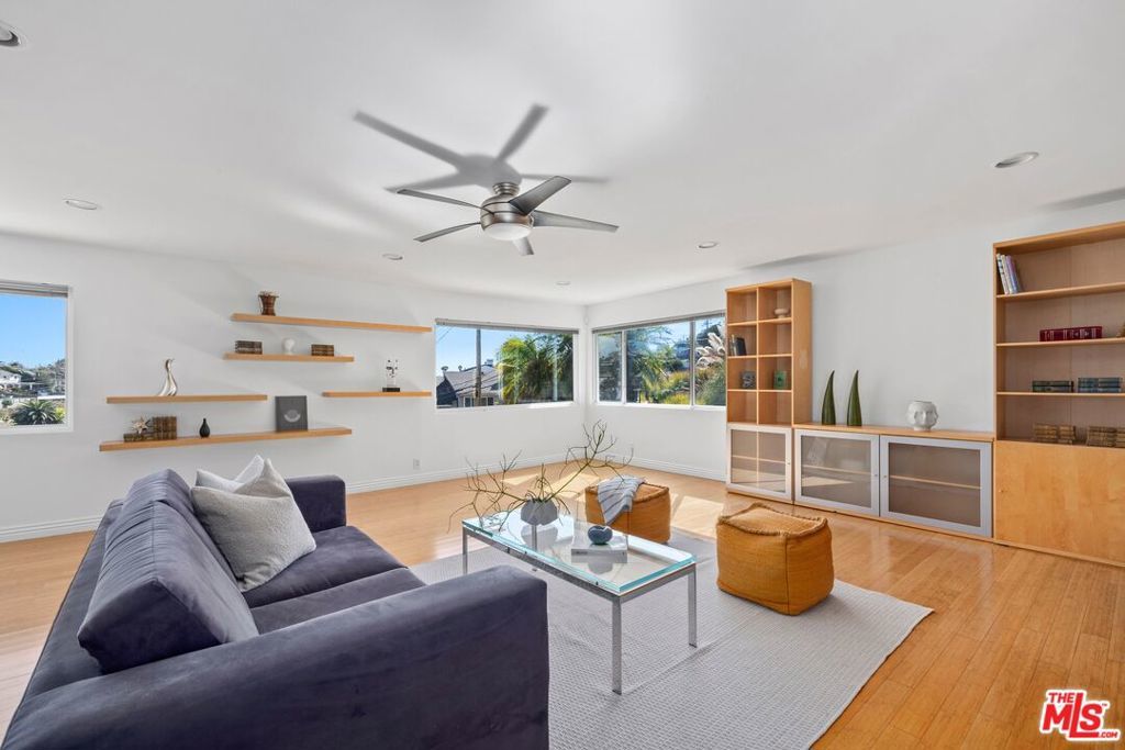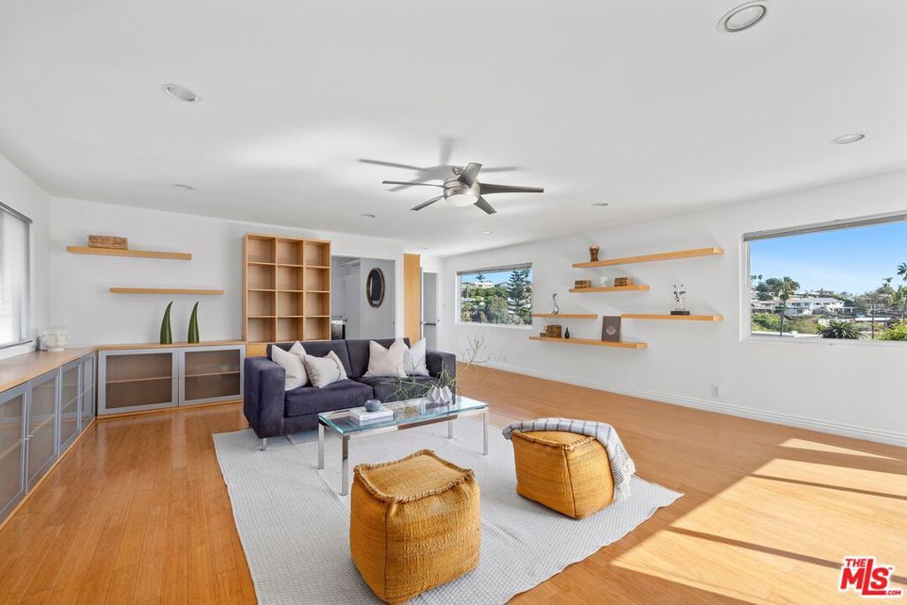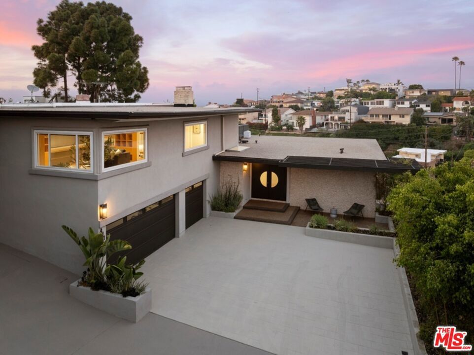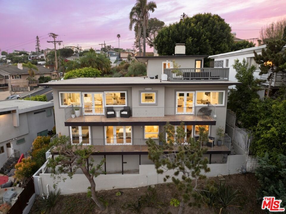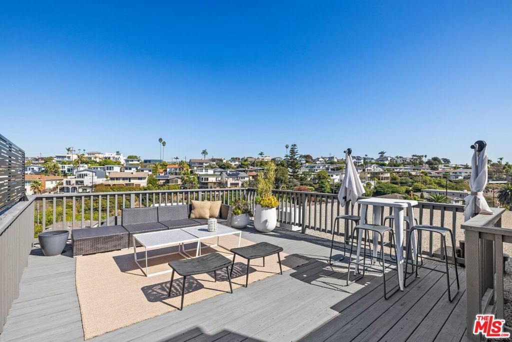 We are excited to present a fully-renovated Mid-Century beauty, an expansive near-ocean retreat that features a stunning rooftop deck, two spacious balconies, and two inviting wood/gas burning fireplaces. Revel in the luxury of a private driveway while enjoying the convenience of being just a short drive from the vibrant city. Experience the essence of coastal living, where you can stay connected without the hustle and bustle, all within the serene Playa del Rey neighborhood with refreshing ocean breezes. As you enter through the custom mahogany and rain glass doors, you will be welcomed by an expansive main floor adorned with wall-to-wall windows that provide breathtaking views. The middle floor harmoniously blends living, dining, and family spaces, anchored by a spectacular entertainer's kitchen outfitted with top-of-the-line Sub-Zero and Wolf appliances, complemented by imported Italian cabinetry featuring powered doors and innovative space-saving solutions. The charming family room includes a functional fireplace, currently enhanced with a gas-fired glass pebble bed for immediate ambiance. Adjacent to this area, a generously sized pantry/laundry room connects to a spacious three-and-a-half car garage. Venture to the upper level, where versatility shines with a bedroom that includes its own bath, fireplace, and access to the rooftop deck, along with a large additional room perfect for a family room, office, or mother-in-law suite. The rooftop deck offers an idyllic setting to soak up the California sun while enjoying panoramic views of the city and marina. On the lower level, discover the primary master suite, featuring a luxurious spa-inspired bathtub, separate shower, and an oversized walk-in closet. Two additional bedrooms share a beautifully updated full bathroom, while ample hallway storage ensures a clutter-free atmosphere. Beneath the home, a substantial storage basement provides a clean and dry space for all your needs. This extraordinary home, nestled on the rare west side of Pershing in Playa Del Rey, is move-in ready, elegantly designed, and waiting for its new owner - YOU! We invite you to join us for the first open house this Sunday, April 12, from 2:00 PM to 5:00 PM. Don't miss the opportunity to make this dream home yours!