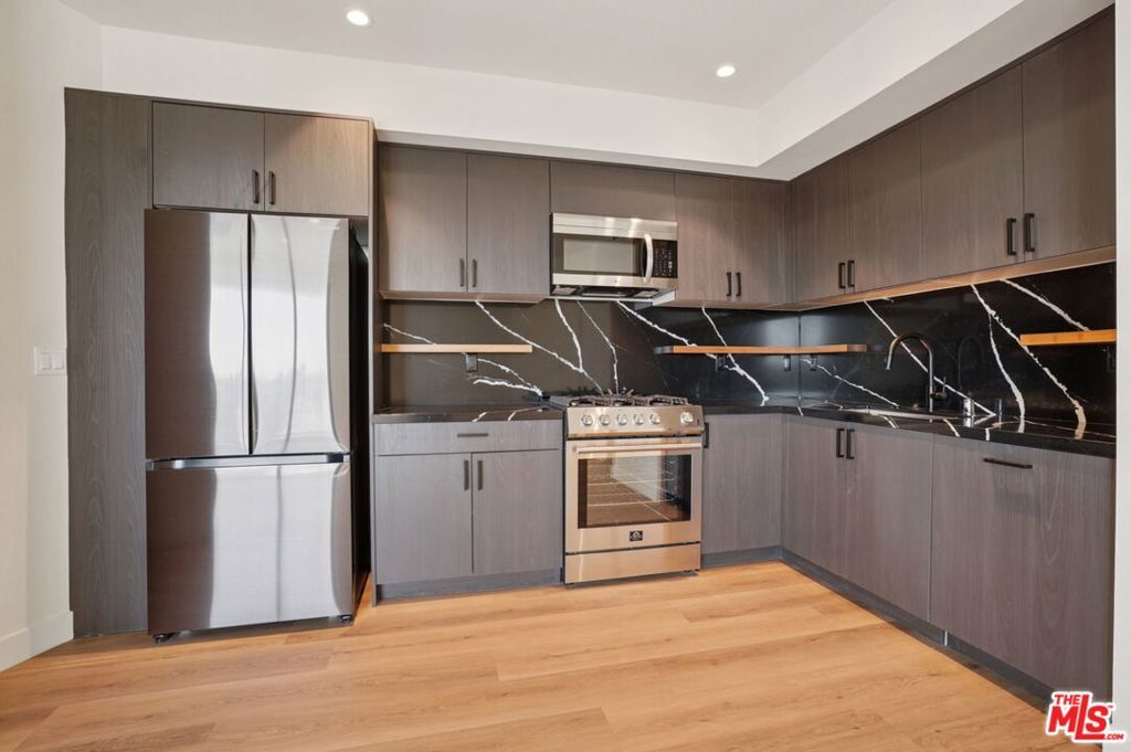 This beautifully designed 2-bedroom residence at The Spaulding offers modern living with refined finishes and a thoughtfully crafted layout. The home features a private balcony, creating a seamless indoor-outdoor flow, along with an in-unit washer and dryer for added convenience. Built-in Sonos speakers enhance the living experience, providing high-quality sound throughout the space.Set within a newly constructed community, residents enjoy contemporary design, on-site parking, and access to a rooftop lounge with a BBQ area and sweeping 360-degree views of Los Angeles. Ideally located near dining, shopping, and entertainment, this residence offers both comfort and convenience in a central location. Available for move-in April 2026.