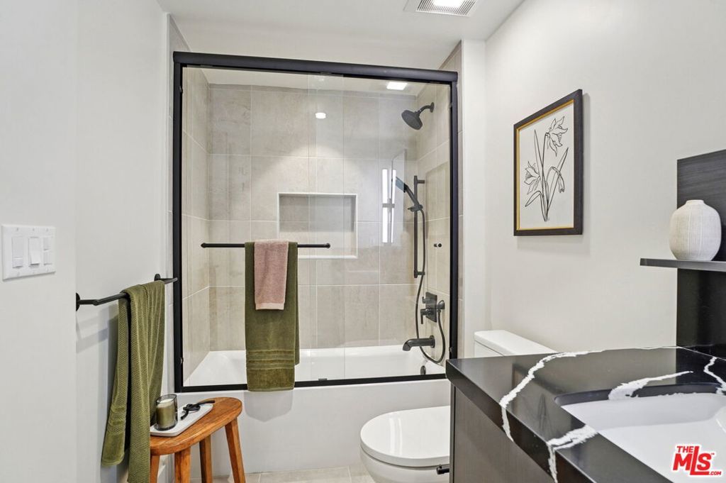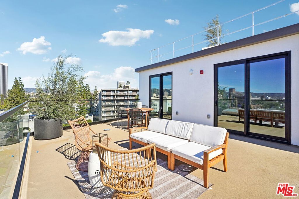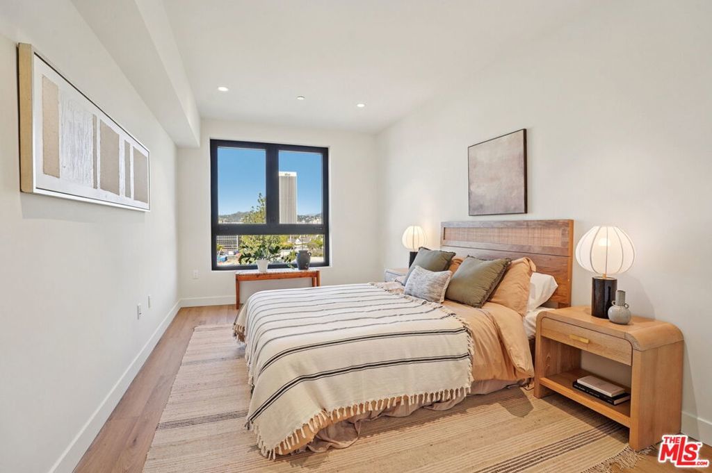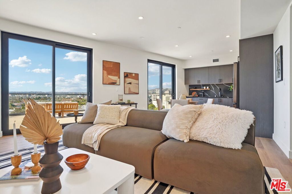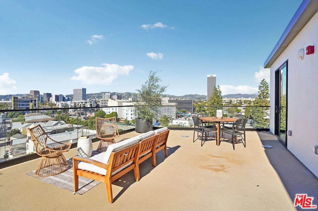 This exceptional penthouse 2 bedroom residence at The Spaulding offers elevated living with sweeping city and mountain views. Designed with a refined modern aesthetic, the home features a private balcony that captures the surrounding vistas and creates a seamless indoor outdoor flow. Expansive windows fill the space with natural light, enhancing the open and airy layout.The residence is thoughtfully appointed with high end finishes, an in unit washer and dryer, and built in Sonos speakers for a fully integrated living experience. Residents enjoy on site parking and access to a rooftop lounge with a BBQ area and panoramic 360 degree views of Los Angeles, all in a prime location close to dining, shopping, and entertainment. Available for move-in April 2026.