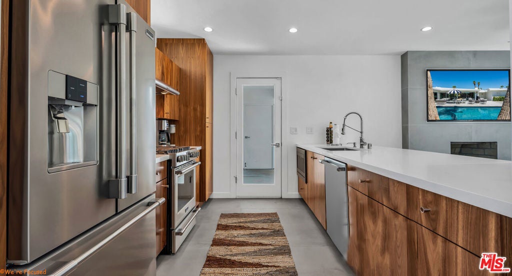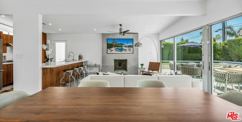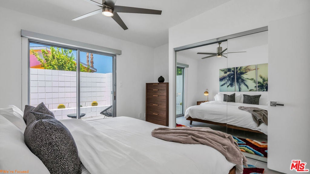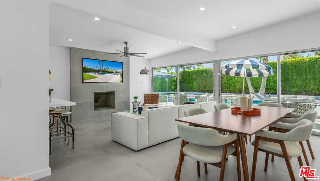 This newly updated 3 bedroom, 2 bath open-floor plan home is a true Palm Springs gem, in the highly sought after Desert Park Estates and it is turn key ready!!! Offered both furnished and unfurnished, this sunny and naturally lit home welcomes you as a place to relax, be creative and entertain guests. Upon entry you are greeted by the open and inviting main living areas with clean and bright tiled floors and beautiful views of the pool in the backyard, perfect for entertaining. Right off of the entry, the family room is accented by a modern porcelain tiled fireplace. You'll love the freshly remodeled kitchen equipped with quartz counter tops, a stainless steel sink, stainless steel appliances and plenty of upgraded walnut cabinets with space for all of your organizational needs. The primary bedroom has direct access to the backyard and showcases a spacious en-suite with dual sinks and a separate upgraded shower. All bedrooms have ceiling fans installed perfect for those warm summer nights, and easy access to the outdoor patio with newly installed sliders. Both bathrooms have been remodeled with quartz counter tops, upgraded cabinets and beautiful new fixtures. Enjoy the California sunshine in the backyard complimented by a large private pool and large outdoor patio. This property has a newly finished 2 car finished garage as well as brand new AC unit and is conveniently located near plenty of shopping and dining options! Also great for walking or taking a nice bike ride. We are looking forward to showing you your new HAPPY PLACE!