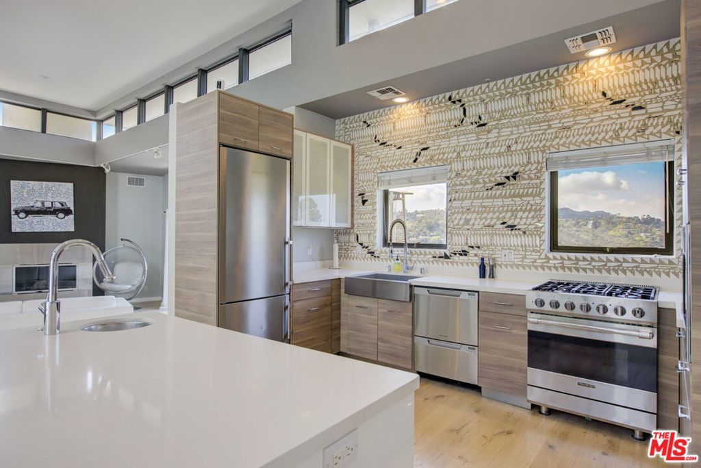 Exceptionally remodeled post modern home in the Hollywood Hills with a Grand scale loft-inspired open floor plan featuring a dramatic step-down living, dining, kitchen & media area with high ceilings, clerestory windows and impressive glass doors that frame breathtaking hillside & skyline views. Multiple decks for easy indoor outdoor entertaining. Open kitchen with Caesarstone counters, custom mosaic wall, center island, SS Fisher Paykel, Viking & Miele appls. Luxurious primary suite features fireplace, walk-in closet & balcony. Bathroom finishes include electronic Toto toilet, steam shower, sunken soaking tub, dual sinks. 4th bedroom, with massive wood barn door is currently set up as a den/office with built-in closets & shelves. Lounge on the private courtyard and relax in the hot tub under the stars. Enjoy the sunsets everyday! Near Great Hiking At Lake Hollywood, Close to Ventura Blvd, Mulholland Dr and Every Studio! 1+ year lease, furnished. Short term lease under 12-months may be considered. Showing by appointment only. Property is occupied. Please do not disturb tenants! Inquire for showings and more info.