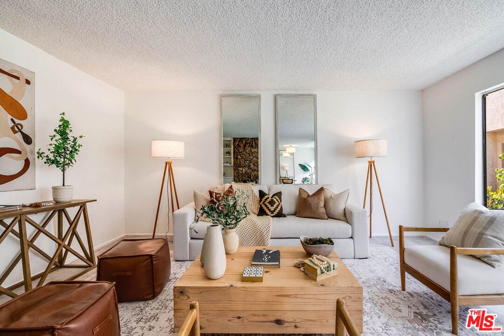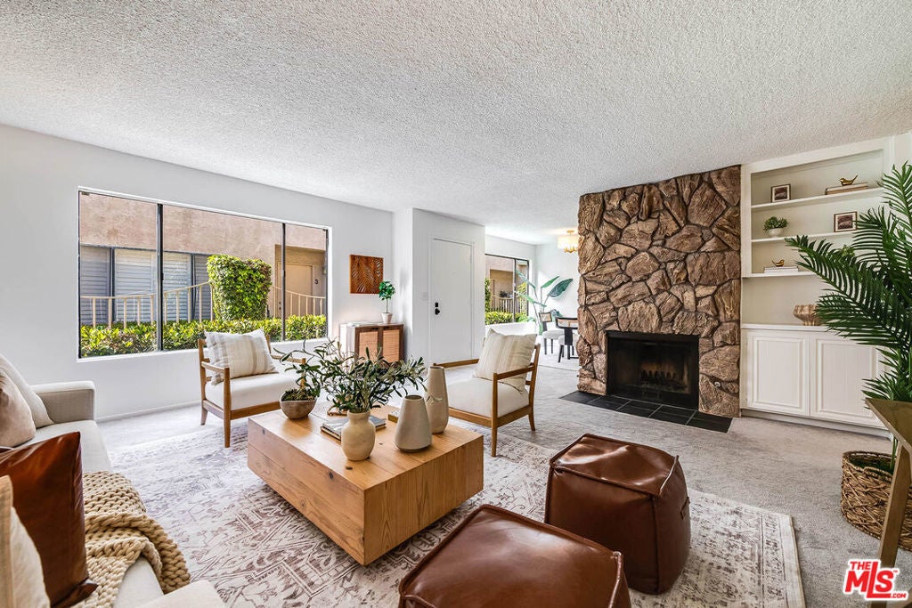 This bright, expressive, 2-bedroom, 2-bath resides on the lower level of a six-unit building in Santa Monica's Sunset Park neighborhood. An approximately 1,072-square-foot layout flows comfortably from an open living and dining to a kitchen updated with stainless steel appliances, newer cabinetry and countertops. Oversized windows flood the main living spaces with natural light. The living room is anchored by built-ins, open shelving, and a vintage lava rock style fireplace that 1970s design enthusiasts consider a rare find. A hallway lined with a full wall of built-in linen storage leads to two bedrooms. The primary suite features a walk-in closet, a separate wardrobe, and an ensuite bath with a shower. A well-proportioned second bedroom is served by a full hall bath, offering a flexible footprint for a roommate, home office, or flex space. The property includes gated tandem parking for two cars and a dedicated storage unit, with exceptionally low monthly dues of $289. East access to Virginia Avenue Park, Pico Branch Library, the Saturday Farmer's Market, and the Metro E Line. Local mainstays like Milo & Olive and Whole Foods are only moments away.