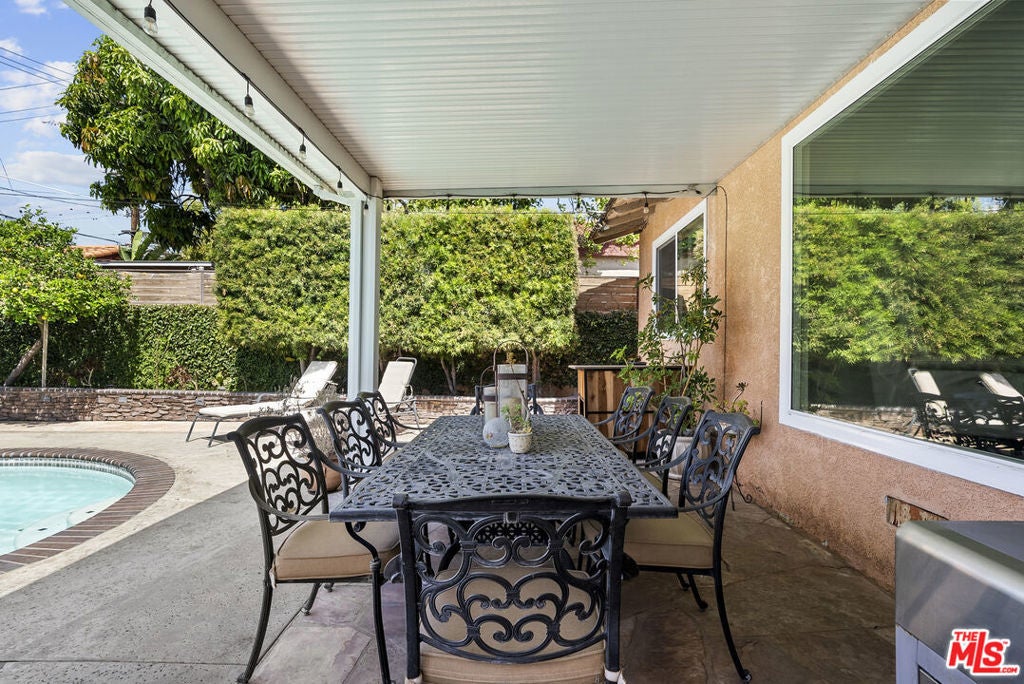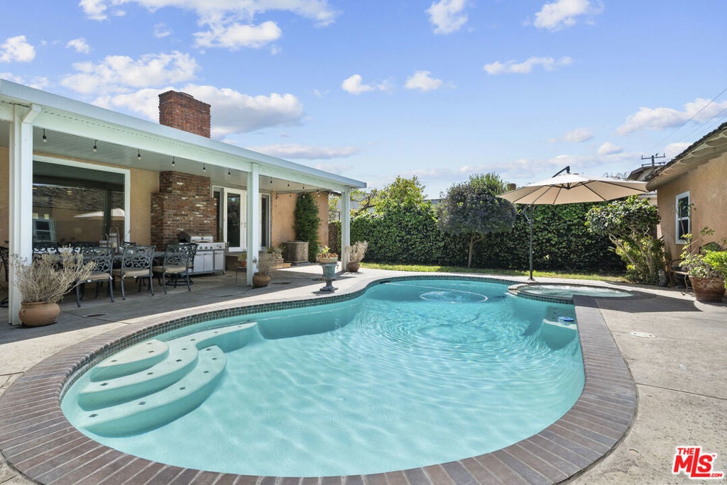 Welcome to this beautifully updated entertainer's dream in the heart of South Gate! Boasting 2,084 square feet of living space on a massive lot of over 8,000 square feet, this property has room for it all. Currently configured as a spacious 2-bedroom, 2-bathroom layout with generously sized bedrooms and abundant closet space offering the seamless option for an easy 3rd-bedroom conversion to suit your growing needs. Step inside to discover a bright, flowing floor plan enhanced by top-to-bottom renovations, including fresh interior paint, new flooring, new interior doors, elegant new window shutters, and energy-efficient dual-pane windows. The home features a formal living room and a large formal dining room, perfectly complementing the beautifully updated kitchen that boasts brand-new cabinetry and pristine countertops.The true highlight of this property is the expansive den, an ultimate entertainer's paradise complete with a cozy fireplace and a built-in bar. From here, open the doors and step out into your private backyard resort. A newly plastered, sparkling pool outfitted with brand-new equipment awaits, alongside a dedicated pool cabana that is ready for warm summer days. You can easily host unforgettable family gatherings and BBQs under the new patio cover, accented by gorgeous flagstone flooring that ties the whole outdoor oasis together.Enjoy year-round comfort and peace of mind with a brand-new central HVAC system. Furthermore, the property features an expansive oversized custom designed three-car garage with a separate cemented area that includes plumbing already set up, presenting incredible potential for an Accessory Dwelling Unit (ADU) for extended family or passive rental income. Conveniently located close to fantastic shopping, local parks, and schools, this turnkey property perfectly captures the very best of South Gate living. Don't miss this rare opportunity to make this spectacular home your own!