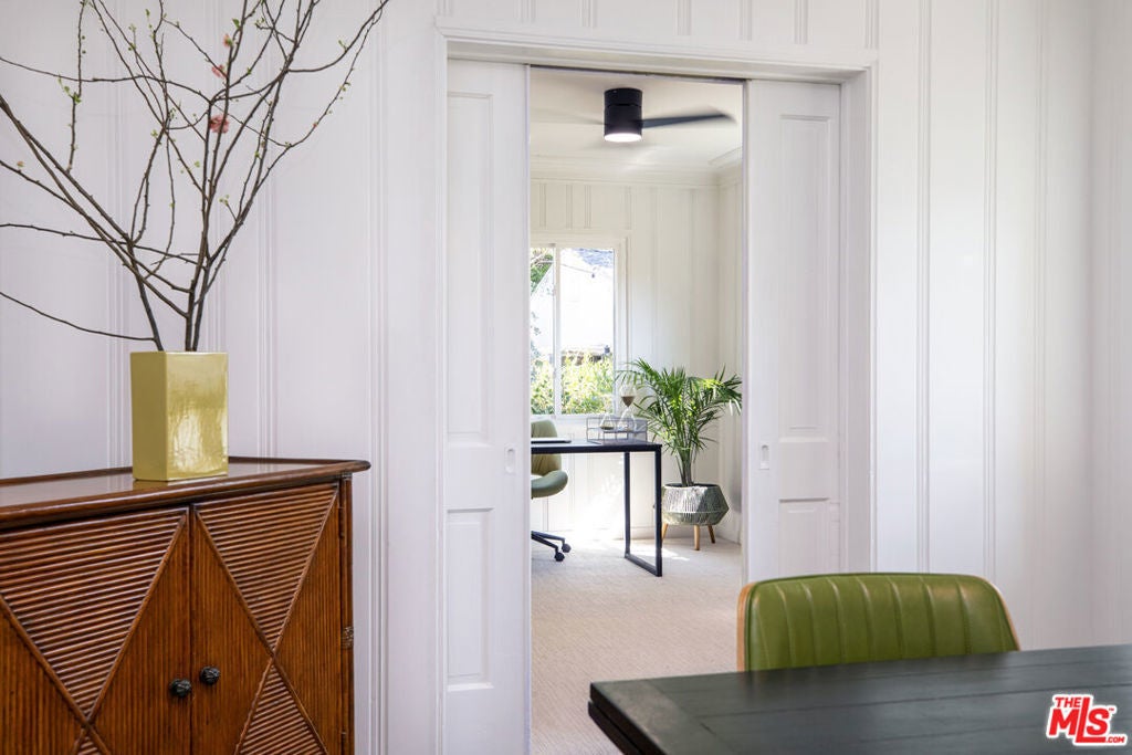 First time on the market in fifty years! Welcome home. Nestled on a quiet street in Montecito Park, one of Glendale's most coveted neighborhoods, this lovingly maintained 1931 gem is a rare find. Offered for the first time in half a century, the home's original character shines throughout, from gleaming hardwood floors, custom cabinetry and intricate crown molding while thoughtful updates, including newer windows and doors, ensure effortless modern living. A west-facing front porch invites you to linger in the afternoon light with peaceful glimpses of the Verdugo Mountains. Step inside to a gracious living room anchored by a wood-burning fireplace, French doors, and a built-in window seat with shelving. The formal dining room flows naturally into a separate eat-in kitchen appointed with ample storage and all-new appliances, plus a convenient laundry closet with a stackable washer and dryer. A sun-filled breakfast room, complete with its own wood-burning fireplace and charming built-in firewood bin, offers the perfect morning retreat. A discreet pair of sliding doors reveals a home office with a closet, easily used as a third bedroom. Down a generous hallway lined with coat and linen closets, a well-sized guest bedroom features its own large closet, while the hall bathroom delights with original tile work and a separate tub and shower. The primary bedroom is a secluded sanctuary, with ample closet space and an ensuite shower bath. French doors open directly to a beautifully landscaped garden with a bubbling fountain, where a covered dining patio with a stone fireplace transforms the outdoors into a seamless extension of the home. A permitted, climate-controlled guest house with a three-quarter bath and generous closet space offers flexible options for guests, a home studio, or additional income. Completing the property are a potting or work room, California basement, and a covered two-car carport with a private driveway.All of this just moments from Montrose Community Park, Oakmont Country Club, Descanso Gardens, shopping on Honolulu and the neighborhood's beloved dining scene including Berolina Bakery, La Cabanita, John Sparr Tavern, and Backbone.