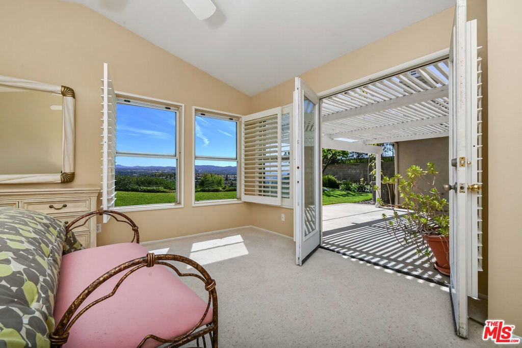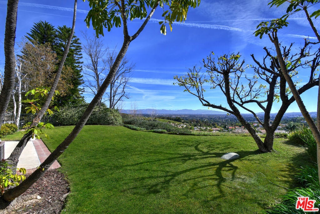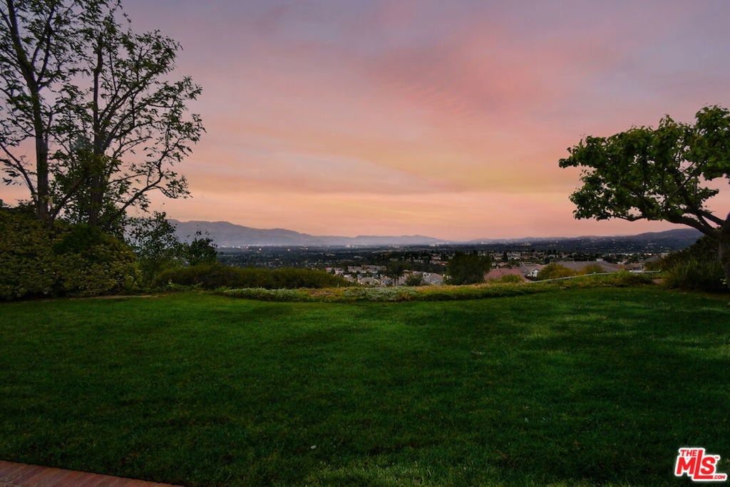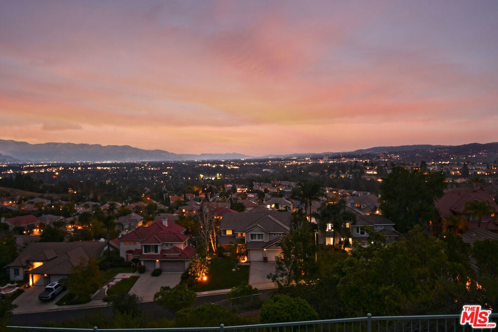 Perched atop the coveted West Hills neighborhood of Stonegate, this stunning single-story home offers breathtaking, unobstructed 180-degree views of the Valley and beyond. Enter through the double doors and immediately be captivated by the expansive, mind-blowing vistas framed by elegant French doors. Thoughtfully designed, the home features well-proportioned living spaces that strike the perfect balance between comfort and style. Vaulted ceilings create an airy, open ambiance, enhancing the seamless indoor-outdoor flow. The spacious primary suite is a true retreat, complete with a walk-in closet and a spa-inspired bathroom. A generously sized den or optional bedroom with a full bath is conveniently located nearby. On the opposite wing, you'll find two additional bedrooms and another full bath, ideal for family or guests. The kitchen opens to a warm and inviting family room with a fireplace, while French doors lead out to a private backyard patio perfect for entertaining or relaxing. As evening falls, enjoy the tranquil setting and shimmering Valley lights that resemble sparkling jewelry. Located in the desirable and peaceful Stonegate community, this home is filled with natural light from numerous windows and offers a lifestyle of elevated, easy living. Just minutes from The Westfield Topanga Mall, The Village, and The Calabasas Commons for shopping, dining, and entertainment, as well as the Rams Training Facility, parks, hiking trails, and top-rated schools.