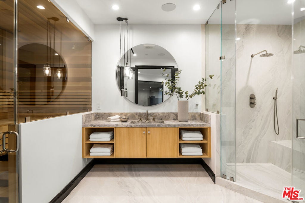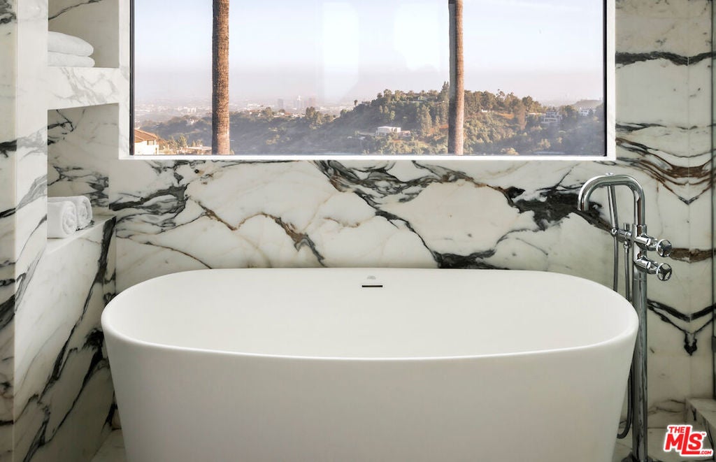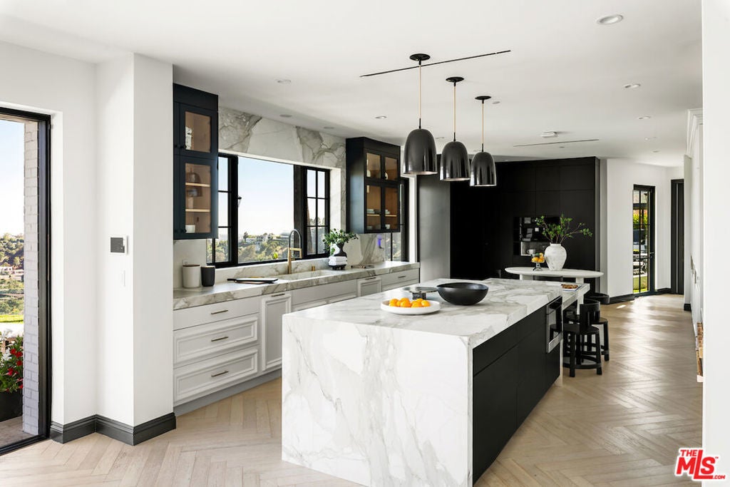 Welcome to 10932 Savona Road, an exceptional estate situated on a quiet cul-de-sac in the prestigious enclave of Bel Air. Redefining luxury living, this six bedroom residence has been meticulously remodeled demonstrating unparalleled craftsmanship and attention to detail. Upon entering the double-height entry, guests are greeted by a grand Italian marble floating staircase and pristine Herringbone hardwood floors guiding through this, sun drenched, open-concept floor plan. Sweeping panoramic views of the canyon, mountains, and ocean are the focal point of the living room courtesy of the Fleetwood doors which seamlessly integrate indoor-outdoor living. The chef's kitchen is fully equipped with a marble island with a waterfall edge, an abundance of cabinetry, and state-of-the-art stainless steel appliances with direct access into the formal dining room for harmonious entertainment. Also on the main level is a wellness center with a sauna and a theatre. Privately tucked away on the upper wing is the primary suite which boasts an opulent en-suite, dual walk-in closets, and a balcony. Four additional bedrooms, all generously sized and en-suite, plus a living room complete the upper level. This 35,000+ SqFt lot is a true outdoor oasis featuring a zero edge infinity pool, an outdoor kitchen and patio for dining al fresco, and a fire pit. A remarkable blend of cutting edge design and functionality.