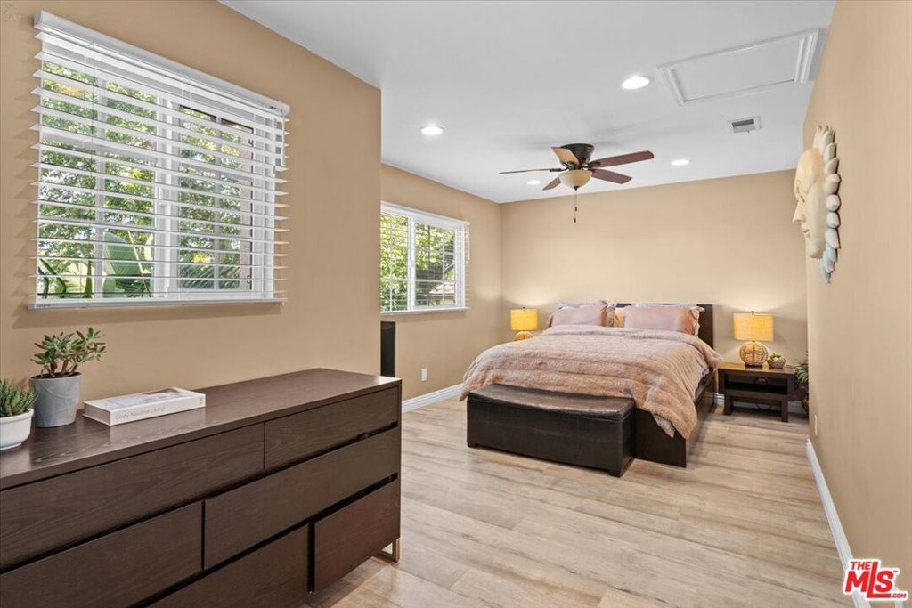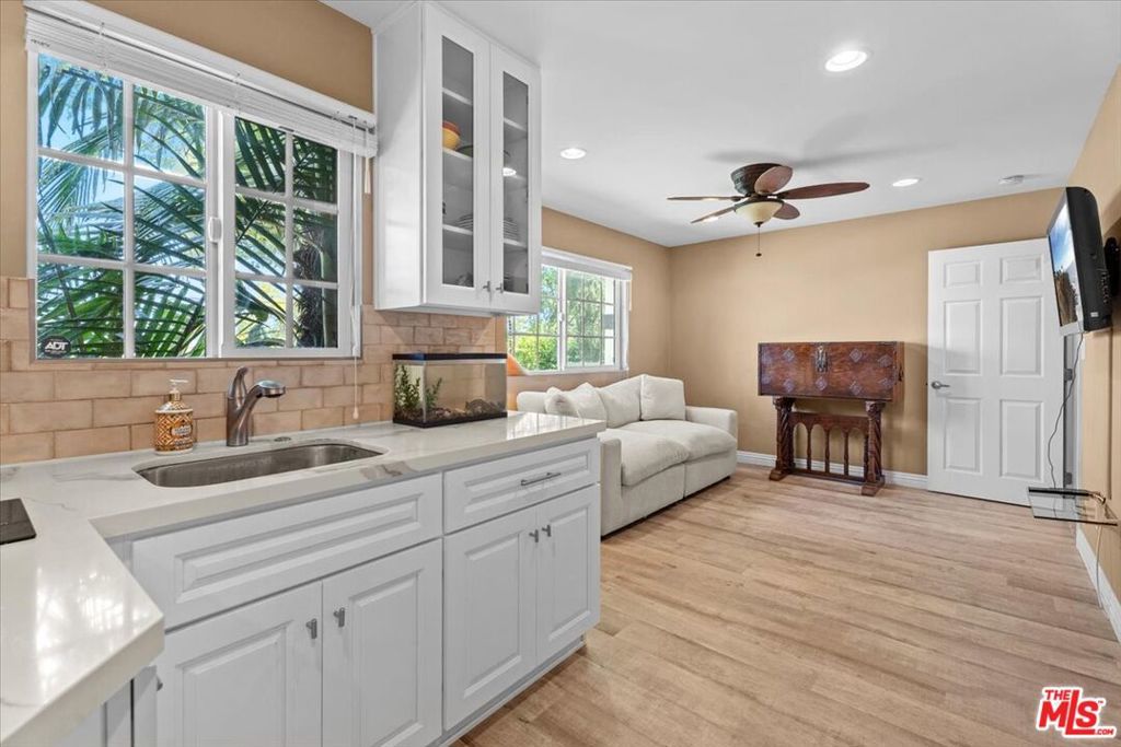 Welcome to 14440 Valley Vista Blvd, a coveted south-of-the-blvd 4 bed + bonus room retreat in the heart of Sherman Oaks, set on an expansive lot in one of the Valley's most desirable neighborhoods. Privately positioned away from the boulevard, the property offers a rare sense of tranquility, space, and potential ideal for elevated California living. The generous grounds invite endless possibilities like enjoying sun-soaked days by the pool, host gatherings under the stars, or utilize the detached bonus guest room as a private office, studio, or guest space. Inside the home has been thoughtfully remodeled with a reimagined kitchen, upgraded bathrooms, new flooring throughout, and a brand-new roof completed in 2025 delivering a clean, modern, move-in ready experience. The flexible floor plan also offers the potential for duplex-style living, with a kitchenette in a bedroom on the opposite side being ideal for guests, extended family, or added income potential. Located just moments from the Blvd, you'll have easy access to top dining, shopping, and everyday conveniences, along with quick connectivity over the hill to the Westside. With its combination of lot size, location, and thoughtful updates, the property also presents a compelling opportunity to further enhance or maximize long-term value.