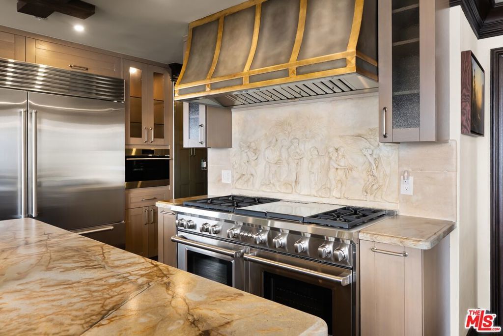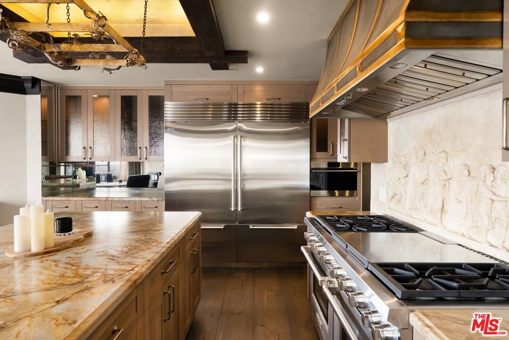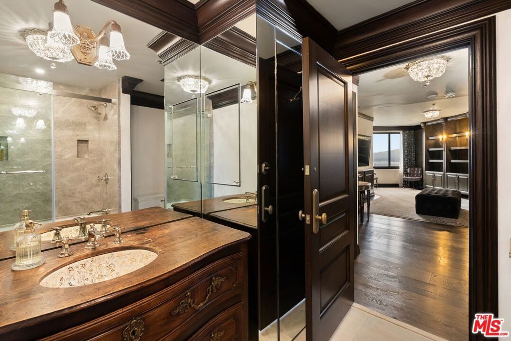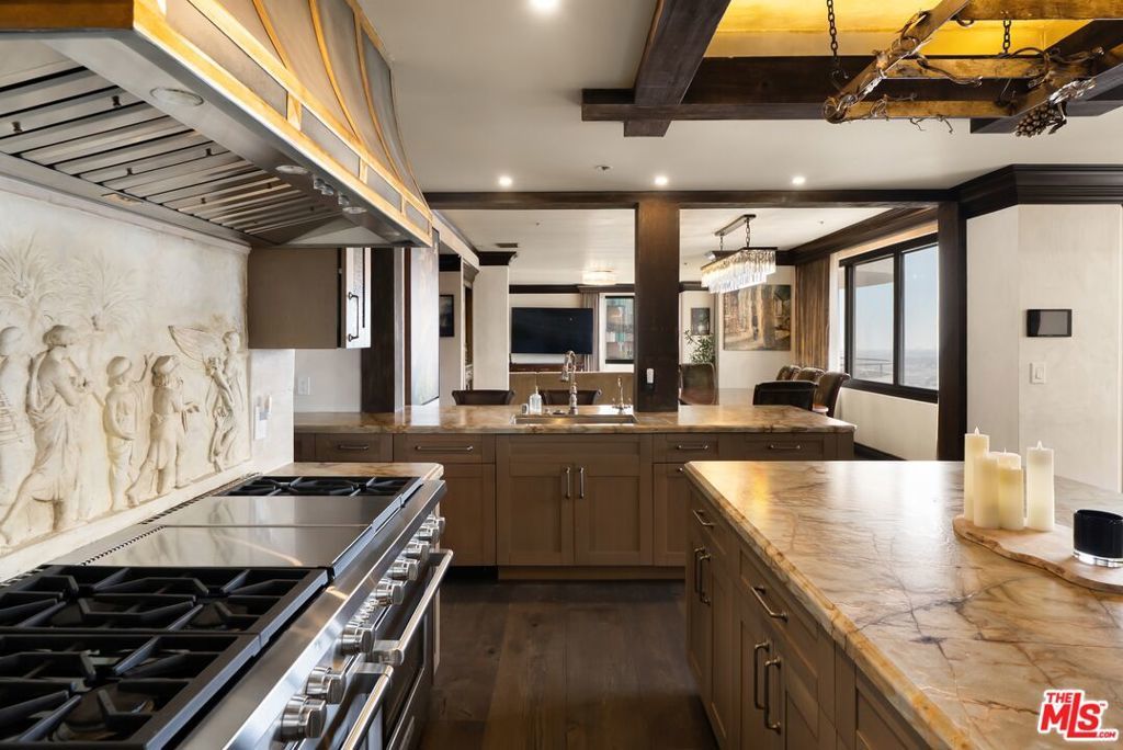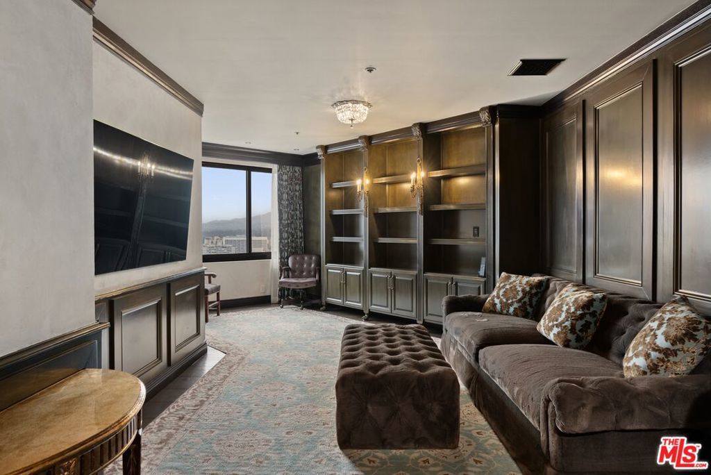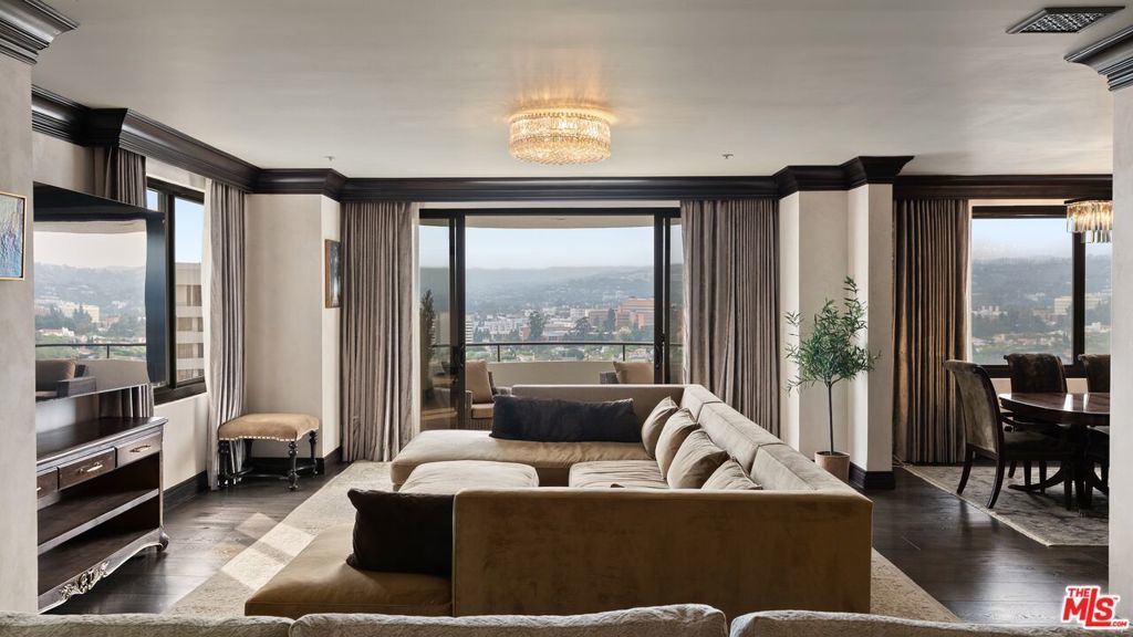 One of the most prestigious addresses on the Wilshire Corridor "Ten Five Sixty" . Very Rare One of a Kind Two-Story Junior Penthouse , A Villa in the Sky with beautiful unobstructed city views are showcased from every room in this exceptionally rare two-story junior penthouse , offering the experience of a true villa in the sky. Spanning approximately 3,605 square feet with three bedrooms and four baths, the residence is the result of a meticulous two-year transformation, defined by extraordinary attention to detail, the highest quality materials, and impeccable craftsmanship throughout. A truly one-of-a-kind offering on the Wilshire Corridor.Dramatic interiors are introduced by a limestone entry and continue with 12-inch walnut plank floors throughout including extensive custom millwork and crown molding . Incredible entry with sweeping architectural staircase, hand-painted walls, living room with custom fireplace mantle that creates a warm yet sophisticated living environment, blending Old World inspired European influence with a refined modern edge. Two private balconies with amazing views further enhance the indoor-outdoor experience.The open chef's kitchen is incredibly striking and highly functional, featuring custom cabinetry, hand-selected honed marble slab surfaces, oversized center island, breakfast bar, and a dedicated breakfast area all complemented by abundant storage. Top-tier appliances include a 48-inch Wolf range with 6 burners, dual ovens, dual Sub-Zero refrigerators and freezers, and a built-in temperature -controlled wine refrigerator, creating an ideal setting for both everyday living and elevated entertaining.The primary suite is a true retreat with beautiful views & built in custom designed shelves, showcasing honed marble slab finishes in bath , a spa-quality steam shower, custom soaking tub and a dedicated vanity. Meticulously designed custom walk-in closet with custom lighting including a safe and more. Every bathroom throughout the residence is uniquely customized with high-end materials and bespoke detailing. A Crestron system provides seamless control of the home, while custom window treatments complete the residence. Adding to its rarity, included in this sale is a fully remodeled 461sq ft private guest studio/suite on the second floor complete with its own kitchenette and full bath offers exceptional flexibility for guests or a dedicated office or staff quarters, a feature seldom found in luxury condominium living. This prime luxury full-service building offers valet, 24-hour security, pool, spa, and fitness center. This is a rare opportunity to own a truly distinctive residence on the Wilshire Corridor." This Luxury Building is close to Beverly Hills Rodeo Drive as well as Century City Westfield Mall, UCLA and More. This is a MUST SEE.. This unit is truly a work of Art & not to be missed.