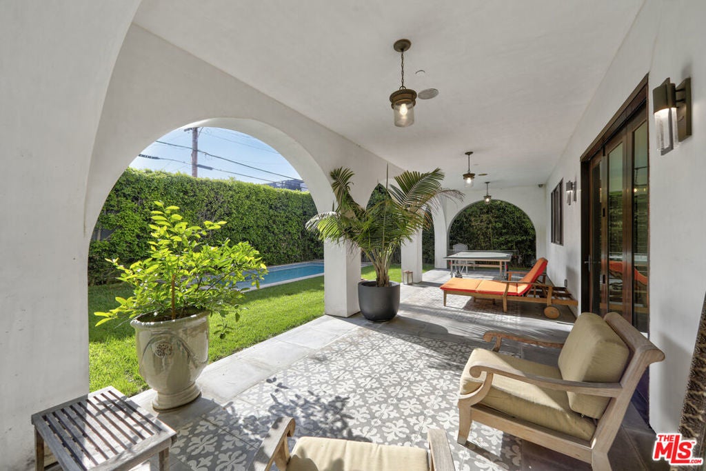 Introducing a refined expression of contemporary mediterranean luxury in the heart of Beverly Hills. This exceptional two-story residence is masterfully designed to offer a seamless blend of sophistication, comfort, and effortless California living.Upon entry, you're welcomed into a luminous living space defined by coffered ceilings, rich hardwood flooring, and a striking contemporary fireplace an elegant setting for both intimate gatherings and grand entertaining. The open-concept design unfolds into a chef-caliber kitchen appointed with premium stainless steel appliances, custom cabinetry, and sleek, designer finishes that balance form and function with precision. The upper level is anchored by a lavish primary suite, thoughtfully designed as a private sanctuary. Indulge in the spa-inspired bath featuring a deep soaking tub, a glass-enclosed shower, and an expansive walk-in closet tailored for a curated lifestyle. Outdoors, a resort-style backyard offers a serene escape, complete with a sparkling pool and ample space for al fresco dining and entertaining under the Southern California sun. Set within one of the most coveted neighborhoods in Beverly Hills, just moments from iconic dining, luxury shopping, and premier entertainment, this residence represents a rare offering of modern elegance and elevated living.