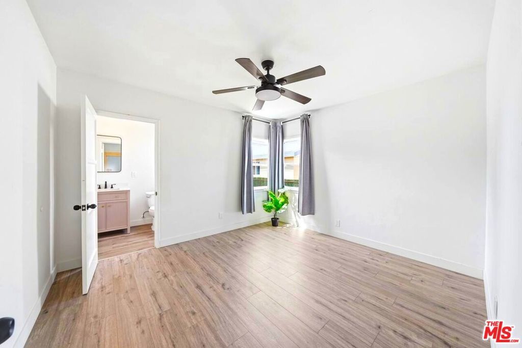 Great opportunity in Los Angeles! This beautifully remodeled single-family residence offers comfort, functionality, and strong potential for both investors and owner-users. Featuring 2 bedrooms and 2 full bathrooms across approximately 939 sq ft, this home sits on a generous 4,843 sq ft lot. The thoughtfully designed layout places the bedrooms on opposite ends of the home, providing added privacy and flexibility. The interior has been fully upgraded with brand new laminate wood flooring throughout, updated bathrooms with new tile and vanities, and a modern kitchen featuring soft-close shaker cabinets and quartz countertops. Additional improvements include upgraded electrical and plumbing, along with a brand new roof. As you approach the property, you'll notice the newly installed sod and irrigation system, enhancing curb appeal and outdoor usability. The home is bright, spacious, and well laid out, creating a welcoming living environment. The property includes a detached 2-car garage with excellent potential for ADU conversion (buyer to verify), offering the opportunity for additional rental income or extended living space. Conveniently located in a residential neighborhood with easy access to major streets, freeways, public transportation, schools, shopping, dining, and parks. The area continues to experience steady growth, making this a great opportunity with long-term upside potential. Priced to sell, this is a must-see property that won't last long.