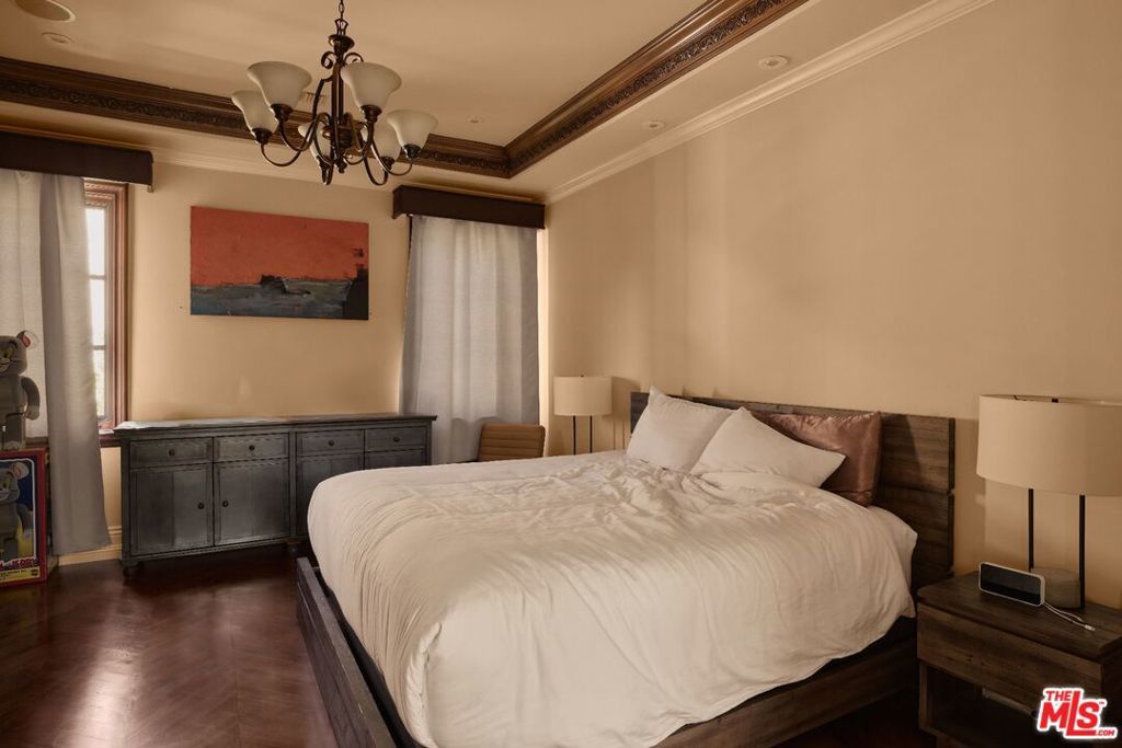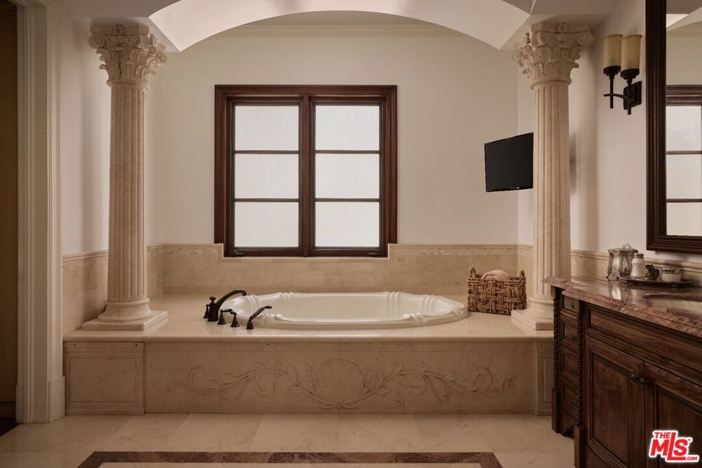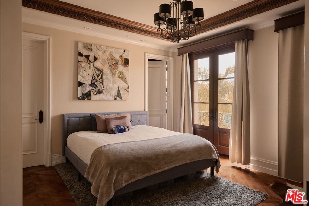 Impressive contemporary mediterranean estate in the coveted Beverly Hills Flats. Built in 2013, this newer construction home is offered fully furnished and features integrated smart home technology throughout. Grand in scale, the interiors showcase soaring ceilings, a sculptural spiral staircase, and curated lighting and security systems. The residence boasts 6 bedrooms and 10 bathrooms, with each bedroom offering an en-suite bath, walk-in closet, and patio access.The kitchen features an oversized marble island and equipped with top-tier appliances, suited for both daily living and entertaining. The primary suite offers a spacious, private retreat with dual bathrooms, including a Jacuzzi, two walk-in closets, and a sitting area overlooking the grounds.Additional features include a private elevator, gated driveway, and a 10-car subterranean garage. The outdoor setting is tailored for entertaining, with a full outdoor kitchen, gazebo, hot tub, waterfall feature, two fire pits and manicured landscaping. A refined offering in one of Beverly Hills' most sought-after neighborhoods. Available for 06/01 move-in.