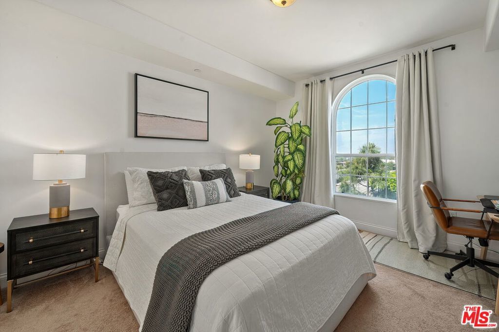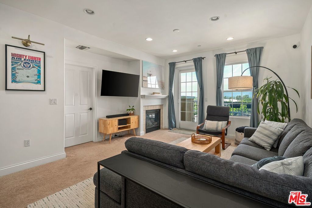 Welcome to 12975 Agustin Place #418, a stunning top-floor corner residence in Playa Vista's highly sought-after Carabela community. Bathed in natural light from its prime north-west exposure, this beautifully updated home offers an exceptional blend of comfort, style, and convenience. A formal entry leads into a bright and airy living room featuring soaring ceilings, a cozy gas fireplace, and seamless access to a spacious private balcony perfect for enjoying breathtaking city views and golden-hour sunsets. The open-concept layout flows effortlessly into a well-appointed kitchen, complete with stainless steel appliances, granite countertops, upgraded fixtures, and abundant storage. The adjacent dining area serves as a natural extension of the space, ideal for both casual meals and entertaining, with additional bar seating for added versatility. This thoughtfully designed home features two generously sized bedrooms, offering flexibility for guests, a home office, or both. The guest bathroom has been tastefully refreshed with updated hardware, shelving, and a modern vanity. The primary suite is a serene retreat, filled with natural light and complete with a spacious walk-in closet and a dual vanity bathroom. Additional highlights include a brand new in-unit washer and dryer, recessed lighting, double paned windows, and the privacy and tranquility of a top-floor corner location. Ideally situated just moments from Concert Park, Whole Foods, Cinemark, The Resort gym and pool, and an array of dining, shopping, and outdoor spaces, this home offers the very best of Playa Vista living.