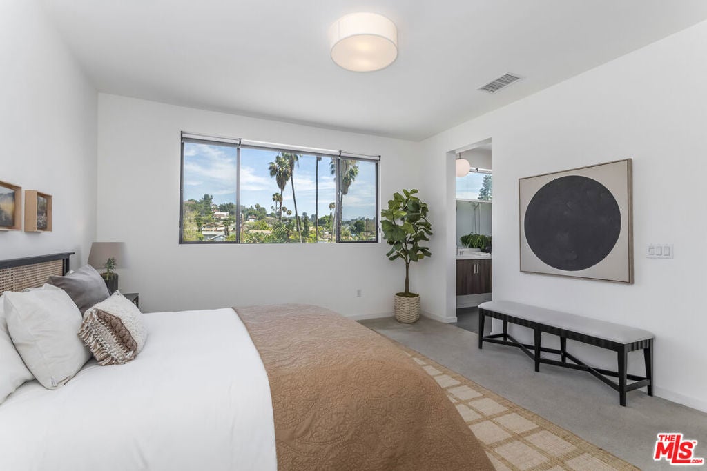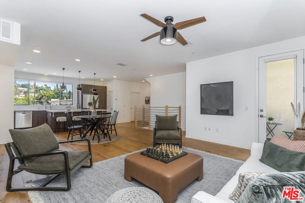Sophisticated modern design on a quiet residential street, a private 2-car garage w/direct access into the home and no shared walls. Community of ten beautiful residences. All three bedrooms offers its own private ensuite. Open floor living and dinning area make for the perfect entertainment space. A large open space with abundant natural lighting, combining living, dining, and kitchen with quartz counters, guest bathroom, and a balcony off the living area. The third level includes a large primary bedroom and a spacious third bedroom. In-unit W/D also located on third floor. Access the roof-deck where you are taking in gorgeous panoramic views of LA. Local hot-spots like Whole Foods, Silver Lake Wine, SilverLake Ramen, Tartine. The Silverlake Reservoir, and many other LA attractions are just minutes away. Garage is equipped with a 220V EV Charging Outlet and the home is pre-fitted for solar installation.