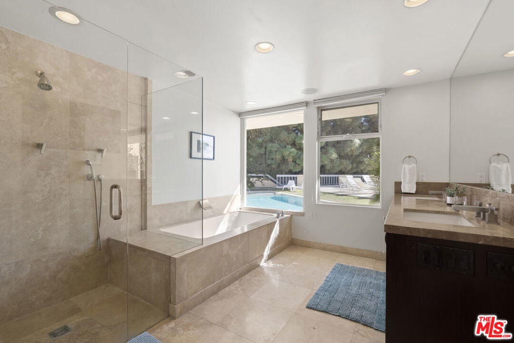Trousdale compound situated on a quiet cul-de-sac in the highly coveted Trousdale Estates of Beverly Hills, this gated property offers a rare dual-residence layout across two independent structures and levels, each designed to function as its own private home. Filled with natural light and capturing expansive views, the first level spans approximately 3,560 square feet with three bedrooms, open living spaces, and an expansive outdoor terrace featuring a pool, spa, and multiple lounge areas, creating a seamless indoor-outdoor lifestyle ideal for both relaxation and entertaining. The second structure, offering approximately 4,500 square feet, features three bedrooms, two generous living areas, and a spacious terrace ideal for elevated entertaining. Combining privacy, flexibility, and scale in one of Beverly Hills' most prestigious neighborhoods, this unique property presents a compelling opportunity for an extended family.