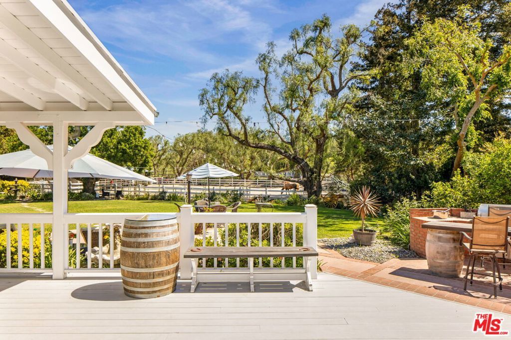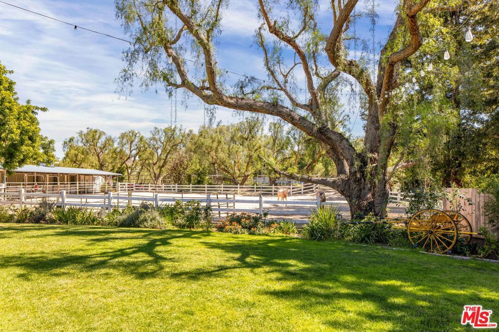 Magical Equestrian Ranch Retreat on over one flat acre located in the exclusive Santa Rosa Valley in California. This property is for those looking for an all-inclusive happy lifestyle in a gem of a community known for its semi-rural lifestyle, rustic charm, equestrian properties with access to many riding and hiking trails. The Ranch Retreat is also located with short distances to Southern California world renowned coastal beach areas. The highly sought after Santa Rosa Technology Magnet School for TK-8 is located within the Pleasant Valley School District - Santa Rosa Valley. The home has been recently renovated with many desirable features for your personal use and enjoyment. Featuring 5 bedrooms, 5 bathrooms, which includes an ADU located with its own separate entrance upstairs above the garage. Charming front yard with covered patio for your seating enjoyment and to appreciate the beautiful mountain views. Upon entering the double door threshold, you are greeted with charm, ease and you know you are home. The home layout is designed for both grand entertaining and quiet intimacy. The living room has a fireplace for your cozy days and nights to cherish with great windows for your views. The kitchen has a center island, pantry, and breakfast bar for all your cooking and entertaining needs with views directly to your covered patio overlooking the grass area surrounded with beautiful landscaping (worthy of filming). You must come, see, and feel this Ranch Retreat to believe and know how magical it is. It also features a lovely dining room located off the kitchen. Both the formal living room and family room have fireplaces to enjoy with your family and friends. The large primary suite is a true sanctuary, boasting an appealing fireplace with built in shelving, direct patio access with beautiful back yard views. The spa like en-suite bathroom has skylights, tub, shower, double sinks, walk in closet and heated floors. Plenty of room at The Ranch to spread out and create your own space to live, rest and enjoy life. Take time to relish the sunrises, mid-day, sunsets from your own amazing covered back patio for you, family, and friends - one of a kind. You can cook fabulous BBQ meals on the outdoor BBQ and cook pizzas in your pizza oven and luxuriate in the outdoor spa while enjoying the enchanting back yard area. Many newer renovations and upgrades include: Life Source water filtration system, 4-bathrooms, copper piping, LED lighting and switches, electric panel wired for portable backup generator, two on demand water heaters, garage door openers, new window coverings and shutters, invisible screens, and painting. The Equestrian Facilities are peerless for all your animal and pet needs. Large, fenced sand arena, with bonus gate side road for delivery access, RV parking and back gated exit to the expansive trail rides located within the Santa Rosa Valley, four stall breezeway barn with separate tack and feed rooms, wash rack, and chicken coop along with automated water system and fly system. Come and experience this private Magical Equestrian Ranch Retreat for your ultimate lifestyle dreams!