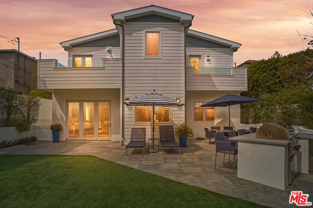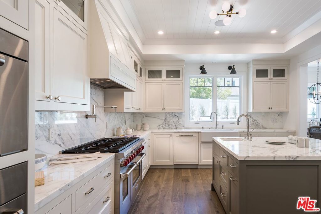 Set in the coveted El Medio Bluffs neighborhood of Pacific Palisades, 530 Arbramar Ave is a beautifully designed 2017 Cape Cod inspired coastal residence that seamlessly blends timeless charm with modern luxury. This 5-bedroom, 6-bathroom home offers an ideal layout for both everyday living and effortless entertaining. A welcoming foyer opens to a warm sitting room with a fireplace, leading into a spacious dining area perfect for gatherings. A striking glass-enclosed, temperature-controlled wine cellar adds a sophisticated focal point. The gourmet kitchen is the centerpiece of the home, featuring a large island, premium Wolf appliances, and a walk-in pantry. The adjacent family room, complete with a second fireplace and accordion-style folding glass doors, opens fully to the backyard creating a true indoor/outdoor living experience ideal for entertaining. The main level includes an en-suite bedroom, ideal for guests or multi-generational living, along with a dedicated theater room for movie nights and gatherings. Upstairs, four additional en-suite bedrooms provide comfort and privacy for all. The luxurious primary suite is a true retreat, showcasing vaulted ceilings, a fireplace, an expansive walk-in closet, and two private balconies that capture the coastal breeze. The spa-like primary bathroom offers a serene space to unwind. The backyard is thoughtfully designed for relaxation and entertaining, featuring lush turf, a fire pit, and an outdoor kitchen perfect for al fresco dining. Additional highlights include an attached two-car garage with an EV charger and direct access into the home. This is a must-see!