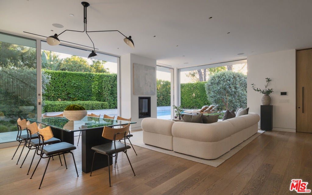 Beyond gates on a coveted hillside street, The Alto Cedro House is a private retreat of rare composure, where light, materiality, and scale are perfectly balanced. Extensively reimagined in 2022, including a substantial addition, the residence spans more than 5,800 square feet with six bedrooms and seven-and-a-half baths, marrying crisp architecture with a warm palette of oak, marble, and glass. The interiors are luminous and quietly cinematic. Skylights and expansive panes draw sunlight deep into the home, where sculpted detailing and finely executed finishes create an atmosphere that feels at once tailored and serene. The principal rooms unfold with an easy rhythm and open broadly through seamless Fleetwood sliding glass doors to the gardens, lawn, pool, and spa, with the hillside setting serving as a constant backdrop. At the center of the home, the kitchen is both sculptural and deeply functional, wrapped in Calcutta marble and appointed with Miele and Sub-Zero appliances. It connects seamlessly to the family room and to a heated outdoor dining pavilion, allowing daily life and entertaining to move effortlessly between indoors and out. The floor plan is thoughtful and highly livable. On the main level, a handsome office with en suite bath is joined by two guest suites and a relaxed media room. Upstairs, the primary suite feels distinctly set apart, with sweeping views to the Pacific, an expansive terrace, a marble bath warmed by wood detailing, and a dressing room with the sensibility of a private atelier. Two additional guest suites, a screening room, and a gym or meditation studio complete the upper level. Outside, the grounds are lush, secluded, and peaceful. A firepit lounge sits beside the pool and spa, citrus trees lend fragrance to the air, and a tucked-away pavilion invites conversation or stillness. Multiple outdoor areas, furnished with an understated resort sensibility, give the property the ease of a private retreat above the city. Supporting the beauty is a meaningful level of infrastructure, including Savant home automation, integrated security cameras, solar panels with battery and generator backup, dual EV chargers, custom wine storage, a UV-ozone pool system with retractable cover, whole-house oxygen ozone water filtration, and a Daikin seven-zone heat pump system. Architectural yet warm, polished yet unforced, The Alto Cedro House offers a nuanced expression of luxury. It is defined by privacy and atmosphere, as well as by scale and finish, with immediate access to Beverly Hills, the Sunset-West Hollywood corridor, and Studio City.