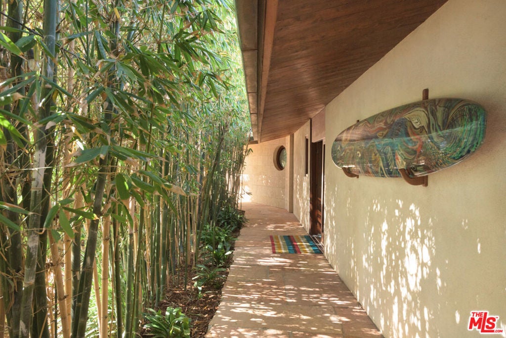 Perched on a 3.5-acre ocean bluff directly across from Tower 12 at Zuma Beach, this extraordinary Polynesian-inspired compound is unlike anything else in Malibu. The elevated position offering panoramic views that sweep from Westward Beach all the way to Leo Carrillo creates a front-row seat to the finest surf breaks on Zuma, while the natural bluff contour delivers a privacy and serenity that makes PCH feel worlds away.The main residence is a beautifully appointed single-story 4BD/4BA home with a distinctly coastal, resort-like energy. The 4,000 SF back house is a world-class entertainment destination: indoor basketball court, professional music room with a C7 Yamaha grand piano and full Bowers Wilkins audio setup and turntable, pool table, shuffleboard, dart cubby, and ping pong. Both structures are tied together with whole-property Spotify AirPlay throughout.At the heart of the compound is an ozone deep water pool finished with exquisite Ann Sacks tile, surrounded by lush tropical gardens designed for creating the ultimate relaxing environment. A private infrared sauna sits tucked inside a bamboo forest. The coastal garden produces citrus and vegetables. Multiple garden alcoves invite quiet moments of meditation scattered across the grounds.Practical details match the lifestyle: dual driveway access via both PCH and Morning View Drive ensures true private entry a rarity in this stretch of the coast. A whole-house water filtration system and under sink drinking water filters serve the front house; the back house has its own drinking filtration as well.A Polynesian spa paradise, a surfer's dream address, and a family entertainment compound all on one remarkable property.