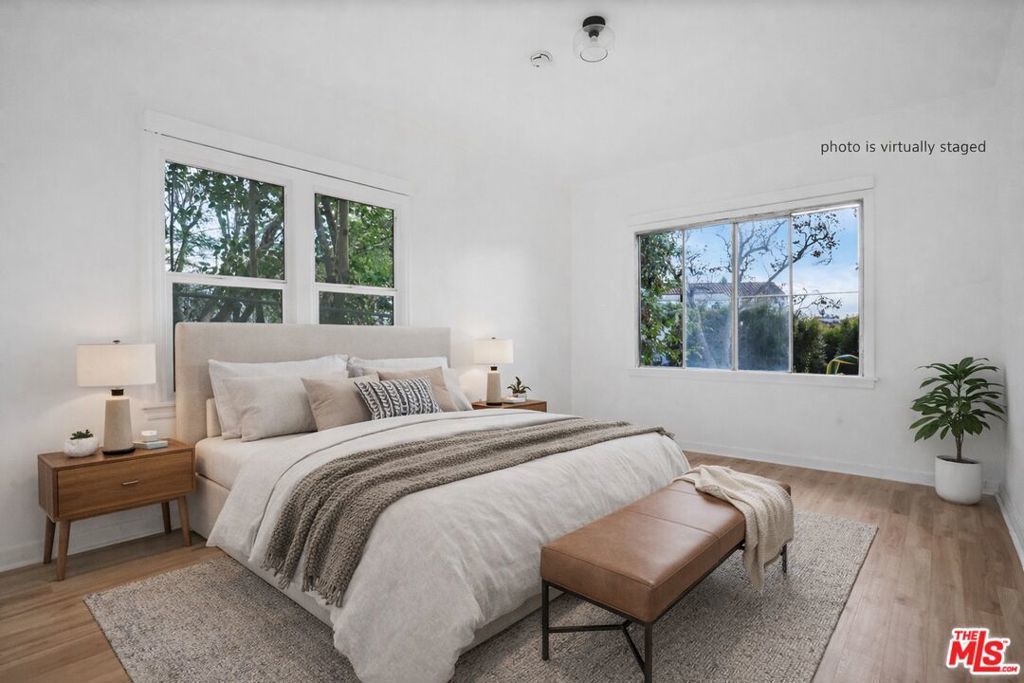 1091 S. Mansfield is a great opportunity to live in a recently remodeled 2 bedroom + 1 bath located in a beautiful- peaceful duplex that is set back from the street. Home was updated in 2023. Many great original details throughout, plus newer laminate warm oak wood floors throughout and crown molding, accenting the spacious living and dining room with tree top views were you can catch the LA sunsets! The kitchen has newer stove, microwave, refrigerator with newer stackable washer/ dryer in laundry area. Quiet neighborhood and centrally located, this is an ideal location close to transportation, Target, Sprouts, and restaurants including Museum Row, The Grove, and the Metro Purple Line. Street parking only. **Furnished photos are virtually staged** 48 hr. Showing Notice Required ** Mini Split AC to be installed** Available May 10th. **