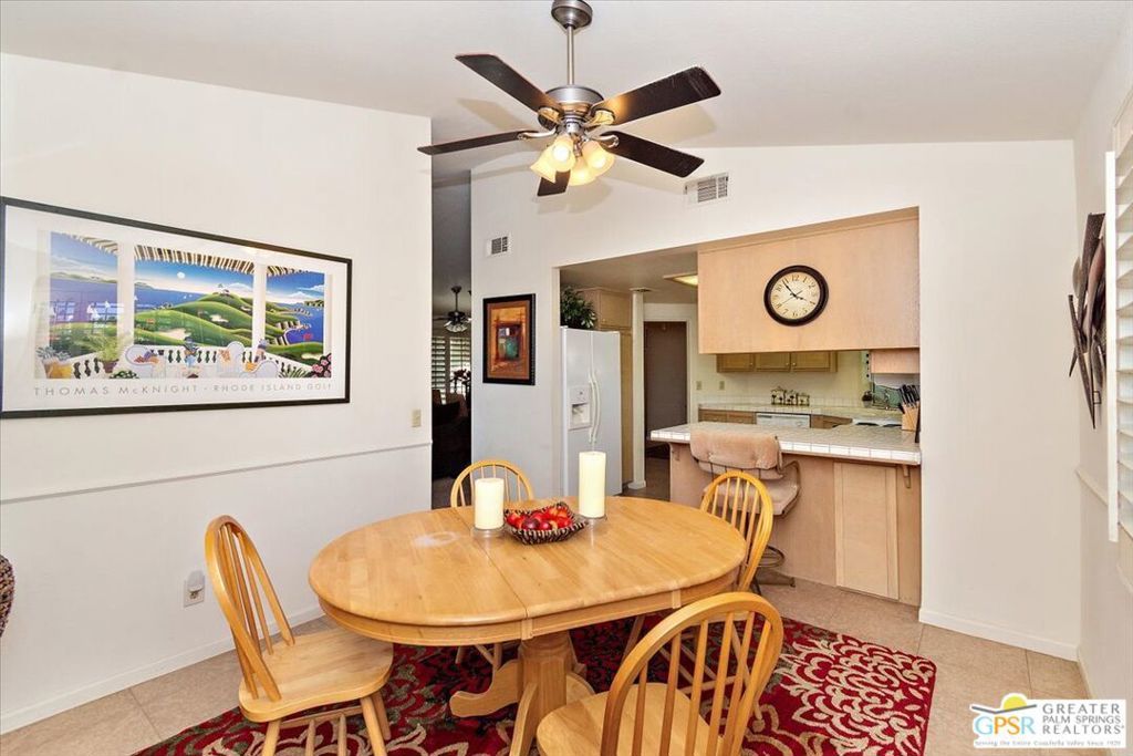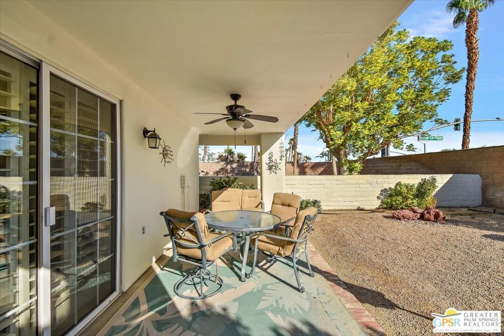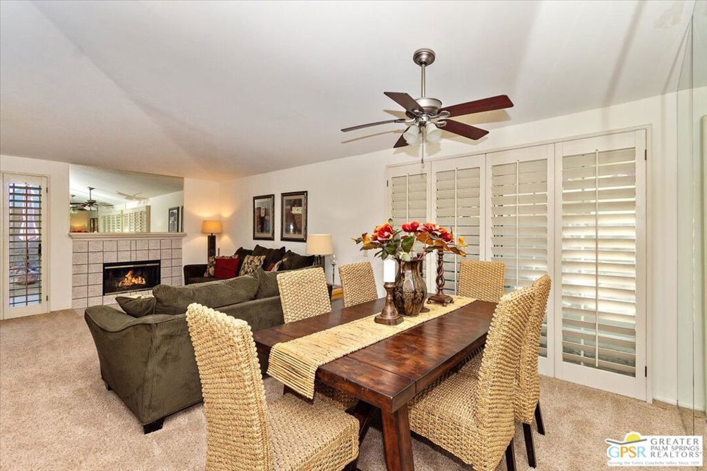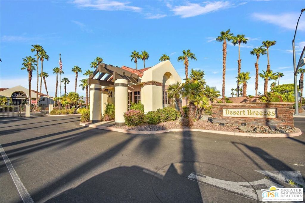 Welcome to Desert Breezes...Where location, potential, and lifestyle come together in beautiful Palm Desert. This 2 bedroom, 2 bathroom home offers 1,441 square feet of well-designed living space with an attached 2-car garage and direct access into the home. Inside, you'll find a freshly painted interior and a thoughtful layout featuring both formal and casual living spaces. The living room is centered around a cozy fireplace and flows into a generous dining area, with an additional casual dining space just off the kitchen. The kitchen offers abundant storage and is in well-maintained original condition, ready for your personal touch. The spacious primary suite features two oversized closets, dual sinks, and a large walk-in shower. The guest bedroom also offers ample closet space, while the second bathroom includes a shower-over-tub combination. Storage is plentiful throughout the home. Step outside to a private, oversized backyard with a covered patio and concrete pad that is perfect for relaxing or creating your own outdoor retreat. Two side yards add additional flexibility, and the tall block wall provides excellent privacy. Enjoy only one direct neighbor, with the other side opening to a peaceful greenbelt. Ideally located directly across from the clubhouse, main pool and spa, fitness center, and courts, this home offers easy access to Desert Breezes' extensive amenities, including multiple pools, walking paths, and beautifully maintained grounds. Centrally located near the shopping and dining of La Quinta, the Indian Wells Tennis Garden, and just a short drive to El Paseo, with convenient freeway access via Washington Street. A wonderful opportunity to enjoy the desert lifestyle in a well-established, amenity-rich community.