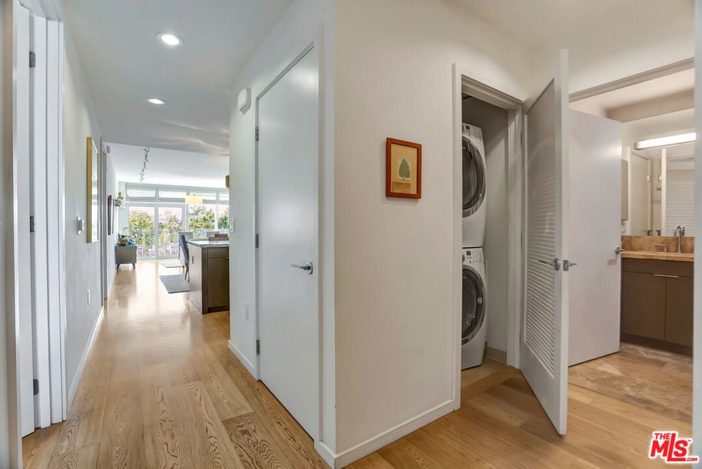 Perched on the fifth floor of the iconic Waverly, this sophisticated 2-bedroom, 2-bath residence captures the essence of modern coastal living. Designed by the renowned architectural firm Marmol Radziner, the building and residence reflect a thoughtful blend of architecture, light, and livability. Inside, floor to ceiling windows and high ceilings flood the home with natural light while framing sweeping views of the Pacific Ocean, the iconic Santa Monica Ferris wheel, and Tongva Park. The open living and dining areas flow seamlessly to a generous balcony, accessible from both the living room and the primary bedroom creating an exceptional indoor-outdoor lifestyle. The kitchen is equipped with top-of-the-line stainless steel appliances, offering both refined design and everyday functionality. The primary suite is a tranquil retreat, featuring direct balcony access and a Carrera marble ensuite bathroom designed for relaxation. Additional highlights include an in-unit washer and dryer, brand new windows and sliding doors recently installed communitywide, walnut built-ins and an EV charger installed by the current owner. The Waverly is one of Santa Monica's few full-service concierge buildings, offering unparalleled personal service and 24-hour front desk security. Residents enjoy access to an Equinox style fitness center and the spectacular fifth floor Skybridge Lounge,a premier amenity with indoor and outdoor seating, sweeping ocean views, a full kitchen, BBQ, and fireplace, ideal for hosting memorable gatherings. Perfectly positioned amid Santa Monica's most celebrated dining, cafes, and shopping--- and just one block from the beach---this residence delivers an unparalleled blend of convenience and coastal elegance.