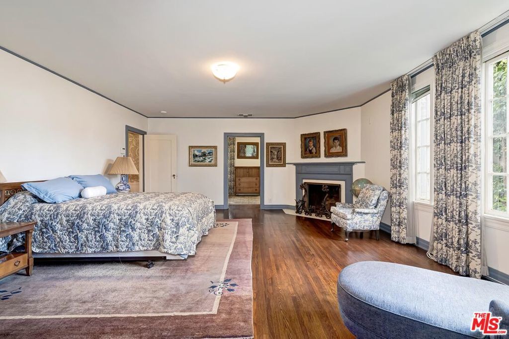 Trust Sale - 1st time available in 50 years. This stately center-hall 2sty East Coast Colonial exhibits total charm and character while sitting on a tremendous lot with 100 feet of frontage at the 50-yard line of one of the Beverly Hills' Westend Flats most prestigious 800 blocks. Spacious rooms featuring wood floors, mouldings, high ceilings, and abundant natural light. Grand deep entry foyer with dramatic staircase leads to enormous and gracious living and dining rooms. Living room opens to a huge Great Room with bar and fireplace flowing to the massive grounds with extensive patio space, BBQ center, endless lawns and mature foliage. 4 generous bedrooms (3BD + convertible library) and a quaint sunlit office upstairs with maid's quarters downstairs. The mammoth primary suite includes a sitting area, fireplace, and a big dressing room. Large chef's kitchen and breakfast area. A central 'mud room' is downstairs and opens to the grounds. A sizeable guest house of 571 sq ft sits atop the garage and storage room with 2 possible bedrooms, kitchen, and bathroom. This is truly a rare generational opportunity to acquire a 'trophy property' with a plethora of potential. Sold in strictly "as is, where is" condition.