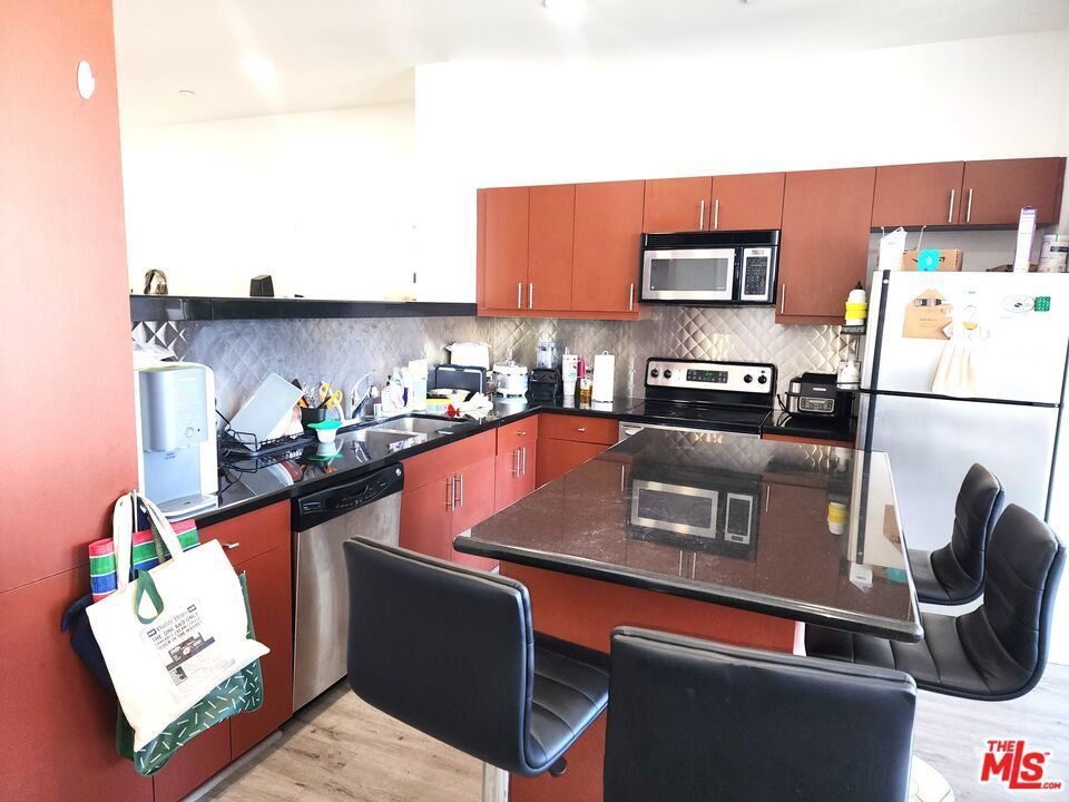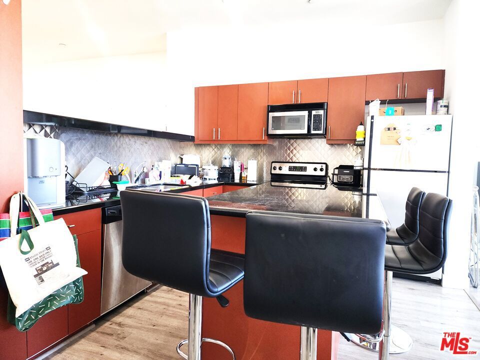Unobstructed views of downtown Los Angeles through expansive windows. Considered the best location one-bedroom, one-bathroom unit in Mercury Complex offering the perfect blend of modern design, comfort, and luxury amenities. Situated on a high floor, this bright home features an open and airy layout with high ceilings, beautiful waterproof flooring, and with a little tender loving care, this is a gem you cannot find elsewhere. Modern kitchen with a large island, stainless steel appliances, glass tile backsplash, and ample cabinetry. Brand new washer, dryer combo included in the sale. Custom built-in cabinetry and abundant storage throughout the unit. Private balcony perfect for enjoying panoramic views of Los Angeles. Secure fob-controlled elevator access and 24/7 front desk service for packages and guests. Sky Deck Amenities: The Mercury offers resort-style living on its rooftop Sky Deck, with heated infinity-edge pool and Jacuzzi spa. Fully equipped fitness center with panoramic views of the Hollywood Sign and Los Angeles skyline. Shaded BBQ and lounge areas with multiple seating spaces. A tranquil grass garden and pet-free lawn for relaxation. Perfectly located in the heart of Koreatown, residents enjoy walking access to trendy restaurants, cafes, shopping, and essential services. The building also offers ample guest parking, a rare convenience in the city.