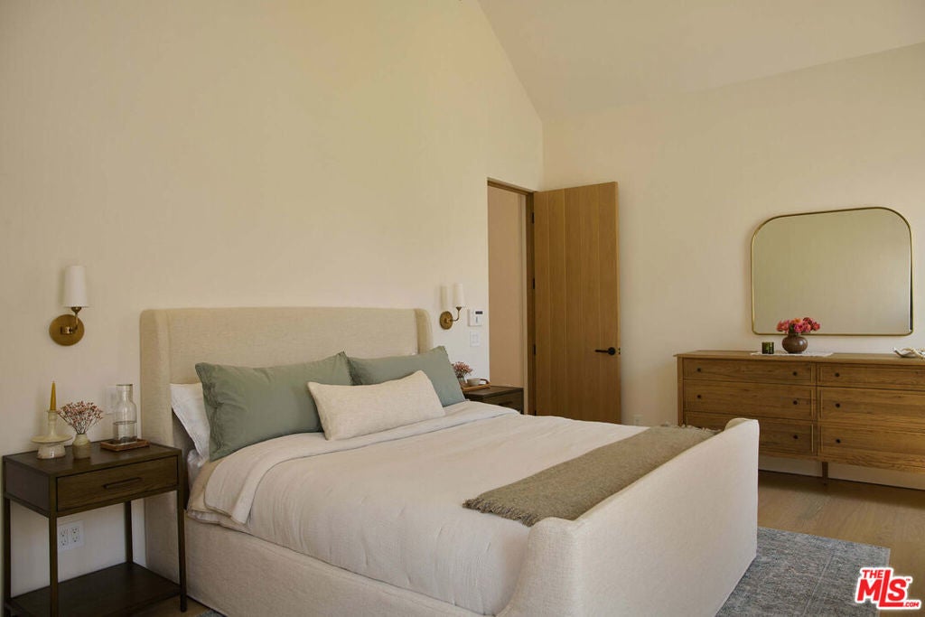 Some homes are built; others are crafted. Every inch of this Westchester residence tells a story of patience, artistry, and a love for design that transcends trends. Conceived by the husband-and-wife team behind Casa Luna Allegra, this home is not a flip, but a personal expression of craftsmanship, a place where design and soul meet. From the street, the home's striking double-gable roofline rises with quiet confidence, a sculptural silhouette that anchors the property in timeless form. Vertical cedar siding and expansive panes of glass balance warmth and precision. Outside, a boardwalk of IPE wood guides you in, grounding you before you even cross the threshold. The Filetti flagstone driveway and thoughtfully layered gardens whisper calm, while olive trees, lavender, and rosemary fill the air with the scent of European coastal evenings. Step through the glass-lined entry, and you feel it immediately. Light pours in, gliding across wide-plank oak floors, and settling beneath vaulted oak-accented ceilings. Every material has been chosen for its honesty and longevity, limestone, brass, oak, and bronze, elements that will only grow more beautiful with time. The kitchen sits at the heart of the home, not just as a workspace, but as a sculpture of daily life. Hand-built oak cabinetry, Thermador appliances, and natural stone surfaces invite cooking, gathering, and connection. The primary suite is a private retreat, warmed by a Montego fireplace and wrapped in natural limestone. As you enter the primary bath you are welcomed with Calacatta Bellini marble, a spa-like sanctuary where mornings feel intentional and nights restorative. Every other bedroom and bath throughout the home continues this standard of artistry and intention, each space carrying the same layered palette, material integrity, and calm sensibility that defines the home as a whole. Even the ADU carries the same soul, antique terracotta floors, hand-built cabinetry, and a fully equipped kitchen echoing the home's design DNA. Behind the design lies enduring substance: a corrugated metal roof chosen for its century-long lifespan, soundproof insulation, tankless systems, and construction rooted in precision and permanence. Every line and proportion has been refined with the same discipline and artistry that shaped the home's overall vision. This is a home designed for those who value craft over stock, authenticity over absences, where every surface has a story and every detail has been touched by human hands.Located in one of Westchester's most sought-after neighborhoods, just minutes from LAX, Bristol Farms, Trader Joe's, and the array of coastal restaurants of Playa del Rey and Playa Vista, this home offers the perfect balance of urban ease and coastal tranquility. More than a home, it's a living work of art, ready for its next curator.
