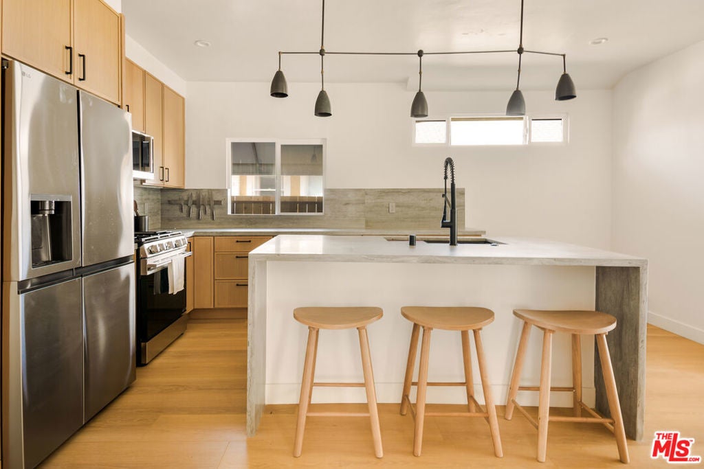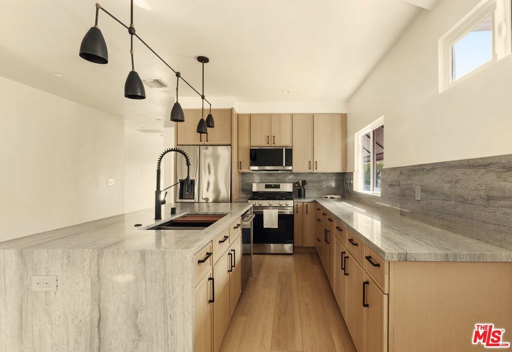 Located in West Adams, this turnkey modern contemporary completely reimagined home is a rare offering. Thoughtfully redesigned with a focus on timeless design and functionality, the residence blends clean architectural lines with warm, natural materials to create an inviting and elevated living experience. Inside, vaulted ceilings, wide-plank oak flooring, and abundant natural light define the open-concept living spaces, delivering an airy and seamless flow throughout. The custom kitchen is both refined and highly functional, featuring white oak cabinetry, a silver travertine waterfall island, stainless steel appliances, and curated designer lighting, ideal for everyday living and effortless entertaining. Living and dining areas connect fluidly to a private outdoor patio, embracing true indoor outdoor California living. The spacious primary suite offers a private sanctuary with a spa-inspired bath highlighted by microcement finishes and refined detailing. Two additional bedrooms and beautifully appointed bathrooms provide flexibility for guests, family, or a home office. Additional amenities include central HVAC, in-unit laundry, and fully updated systems throughout. A compelling opportunity offering exceptional value, a functional layout, and a completely move-in ready experience in one of Los Angeles' most dynamic neighborhoods. Ideally located just minutes from Culver City's leading tech hubs, West Hollywood, and the vibrant dining and cultural scene of DTLA, placing the best of the city within easy reach.