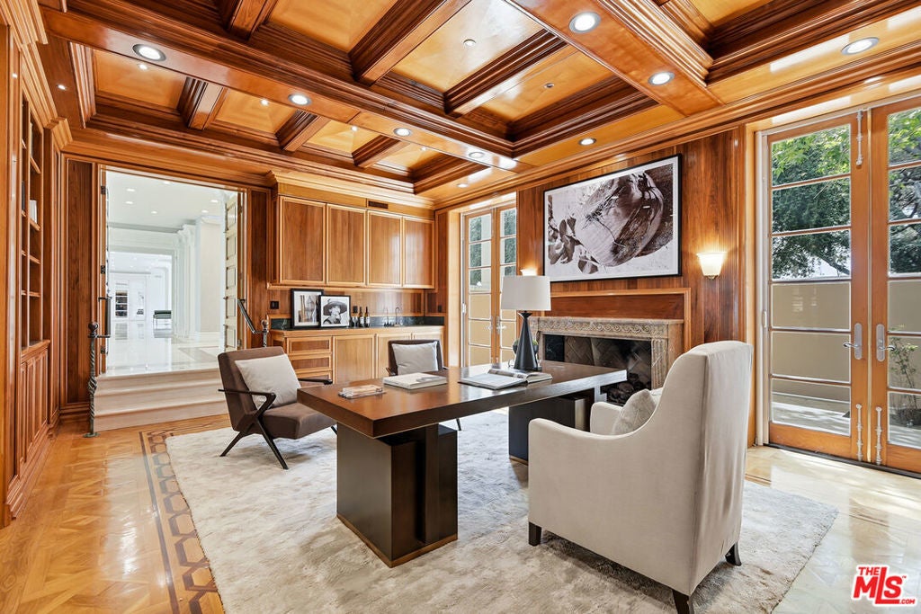 Perched above a long gated driveway, this Grand Mediterranean sits on over an acre of gorgeous resort-like grounds with night lit tennis court. Step inside double doors to discover impressive 2-story entry with skylights and marbled staircase. Enormous stepdown living room highlighted by fireplace, beautiful wood paneled office with wet bar, large formal dining room and decorative kitchen with top-of-the-line appliances, oversized center island and adjacent breakfast room. Extraordinary primary suite features another full living room with fireplace and two separate sumptuous baths highlighted by skylights, jacuzzi tubs, sauna and large walk-in closets. There are 4 additional family bedrooms upstairs, each en suite with walk-in closets and balcony access. Second staircase leads down to spacious family room with fireplace and game room/nook. French doors from almost every living space lead to expansive verandas with outdoor seating, built-in BBQ and pizza oven, and manicured gardens with lush grassy lawn perfect for entertaining! Detached 2-story 2bedroom guest house with kitchen overlooks enticing sparkling pool and spa. Temp controlled wine cellar, 2 staff quarters with shared living space, 2 laundry rooms, solar panels and 3-car garage complete this magnificent estate.