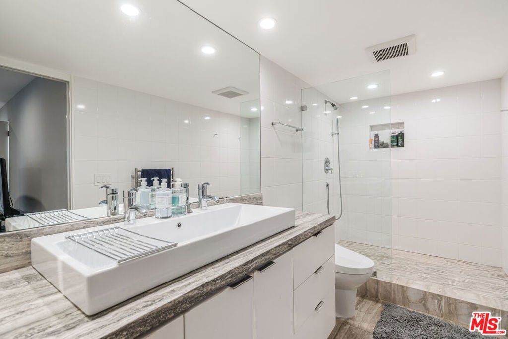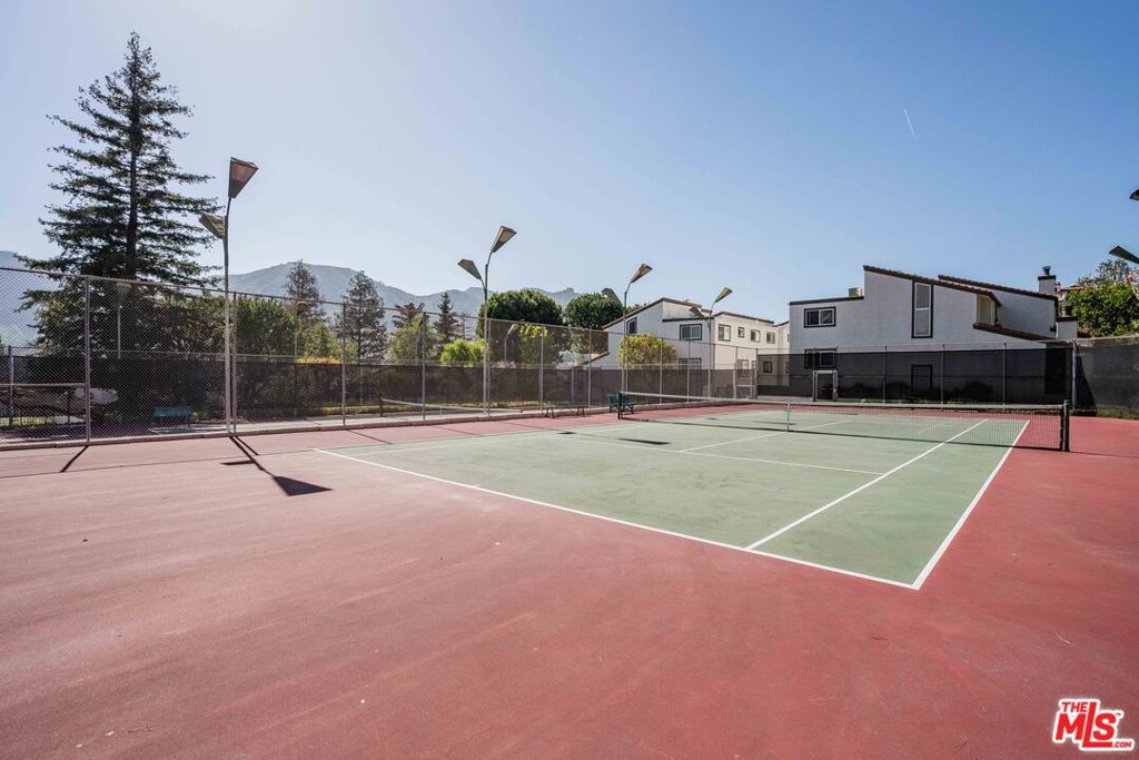 Welcome to this beautifully remodeled townhome offering breathtaking mountain views. Featuring a private two-car garage equipped with an EV charger, the townhome opens to a bright and open main living level. This level includes a spacious living room, a breakfast nook with scenic views, and a remodeled kitchen outfitted with a Sub-Zero refrigerator and Wolf range. A powder room is also conveniently located on this level, along with a private balcony off the living area overlooking the beautiful Santa Monica Mountains. The lower level includes a large bedroom with high ceilings, a walk-in closet, private outdoor space, and an ensuite bathroom. This level also includes a second bedroom currently configured as an office. The top level features an expansive third bedroom with soaring ceilings, complete with a walk-in closet, full bathroom, and a private patio capturing the home's best views.Residents enjoy resort-style amenities including tennis courts, pool, gym, and sauna. A great opportunity to experience privacy, stunning views, and exceptional amenities. Offered furnished or unfurnished at $7,200 per month.