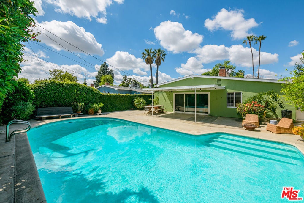 A rare Mid-Century Modern retreat on an expansive, private lot in Lake Balboa. Designed for quintessential California indoor/outdoor living, this property blends timeless architectural style with modern upgrades. This beautifully re-imagined home offers 4 bedrooms and 2 bathrooms, with a thoughtfully updated kitchen and renovated bathrooms that reflect a balance of clean lines and modern sophistication. Abundant storage throughout including a cedar-lined closet adds both function and a touch of everyday luxury. Sun-drenched grounds create a true backyard retreat, where a sparkling pool, outdoor shower and mature Meyer lemon trees set the stage for quiet mornings or lively gatherings under the California sky. The front yard is enhanced with a low-water irrigation system, combining sustainability with understated elegance. A spacious 2-car garage offers exceptional potential for ADU conversion (buyer to verify), providing flexibility for guest accommodations, a creative studio or additional income opportunities. This is more than a home it's a lifestyle defined by light, space and the enduring appeal of Mid-Century architecture, thoughtfully elevated for modern living.