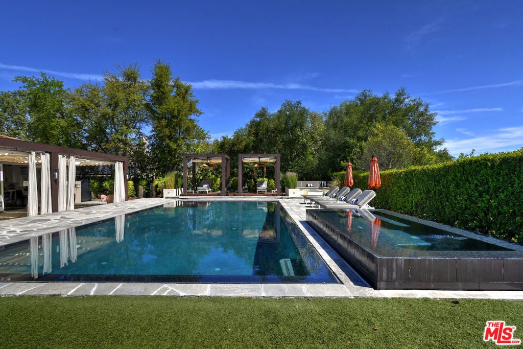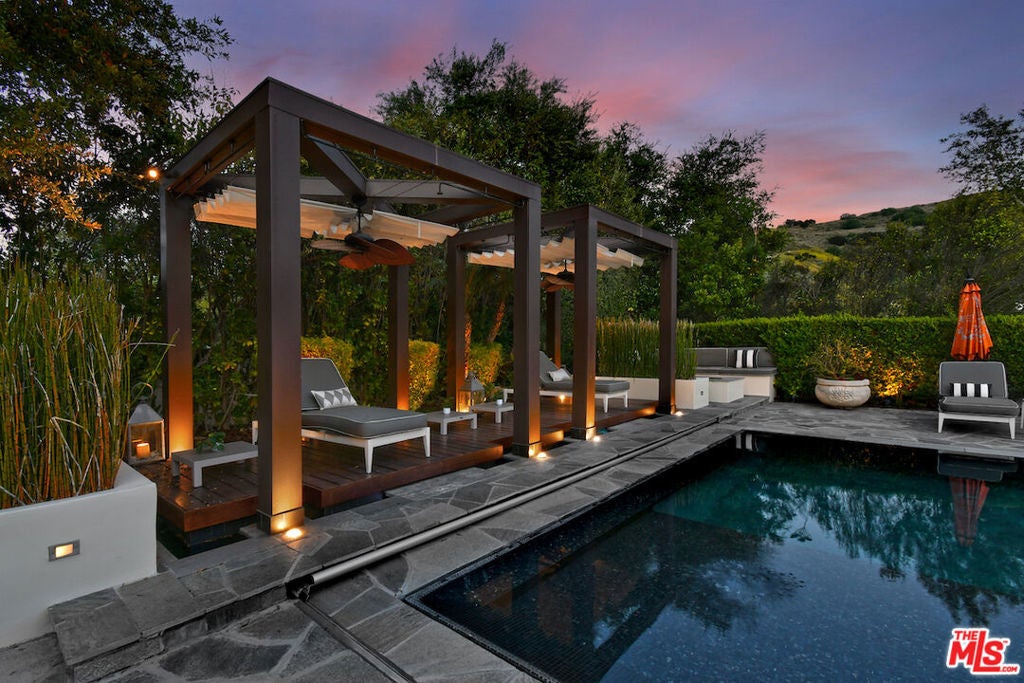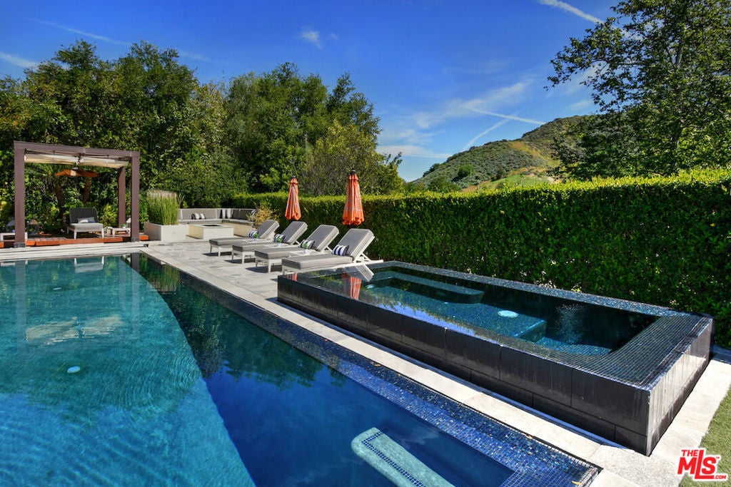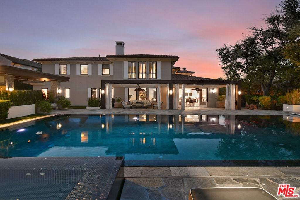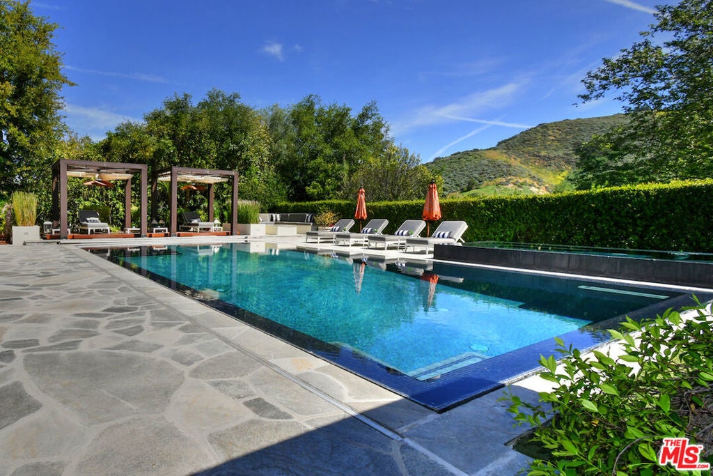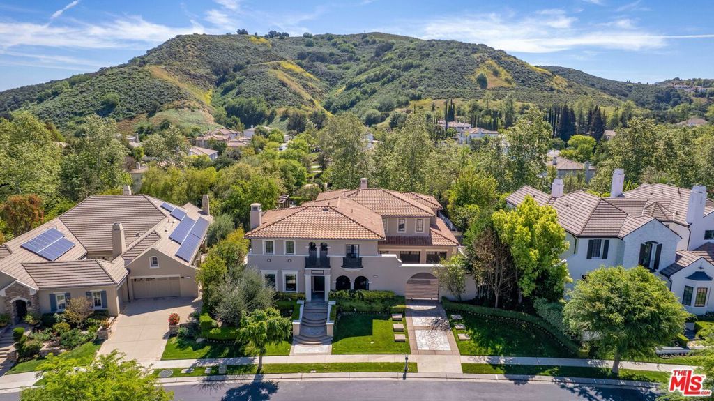 Located on a rare, tree-lined cul-de-sac within The Oaks of Calabasas, one of Southern California's most prestigious 24-hour guard-gated communities, this exceptional estate offers a level of privacy and tranquility seldom found. With no through traffic, the setting is remarkably quiet and serene, creating a true sanctuary environment. Set against unobstructed panoramic views of the Santa Monica Mountains, the home captures breathtaking natural beauty from sunrise to sunset, elevating everyday living into a resort-like experience. Spanning approximately 6,000 square feet on an expansive 22,000+ square foot lot, this stunning two-story residence offers 5 bedrooms and 7 bathrooms, seamlessly blending timeless architecture with elevated contemporary design. At the heart of the home is a state-of-the-art chef's kitchen featuring premium Wolf appliances, a generous center island, and a sunlit breakfast area all flowing effortlessly into the spacious family room with fireplace and French doors that open to the outdoor living spaces. The formal living room showcases soaring ceilings and a fireplace, while the elegant dining room provides the perfect setting for both intimate dinners and large-scale entertaining. Thoughtfully designed for both comfort and functionality, the home also features a charming courtyard with fireplace, executive office, gym area, utility room, and a private downstairs suite with its own living area ideal for guests or extended stays. Upstairs, a grand landing leads to an additional family room. The luxurious primary suite is a true retreat, complete with a sitting area and fireplace, a spa-inspired "Four Seasons" style bathroom with oversized shower, and a bespoke walk-in closet. Three additional en-suite bedrooms offer generous proportions and refined comfort.The resort-style backyard is a true showpiece, evoking the ambiance of a private Thai-inspired Four Seasons-style retreatperfect for both vibrant entertaining and peaceful family evenings. A stunning zero-edge pool seamlessly blends into the surrounding landscape, complemented by an oversized spa with high-performance jets and multiple water features enhanced by sophisticated lighting for a dramatic nighttime atmosphere. Designed for elevated entertaining, the outdoor pavilion features a fully equipped kitchen with premium Wolf appliances that flows seamlessly to a built-in Lynx Grills barbecue, creating an effortless transition between indoor and outdoor living. Two cabanas designed as aquatic lounges, a fire pit, sport court, and multiple lounge areas complete the grounds, offering a series of distinct experiences within one extraordinary setting. This is more than a home it is a private resort, a retreat, and a lifestyle defined by elegance, comfort, and unforgettable moments.