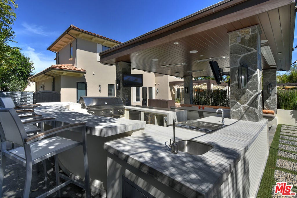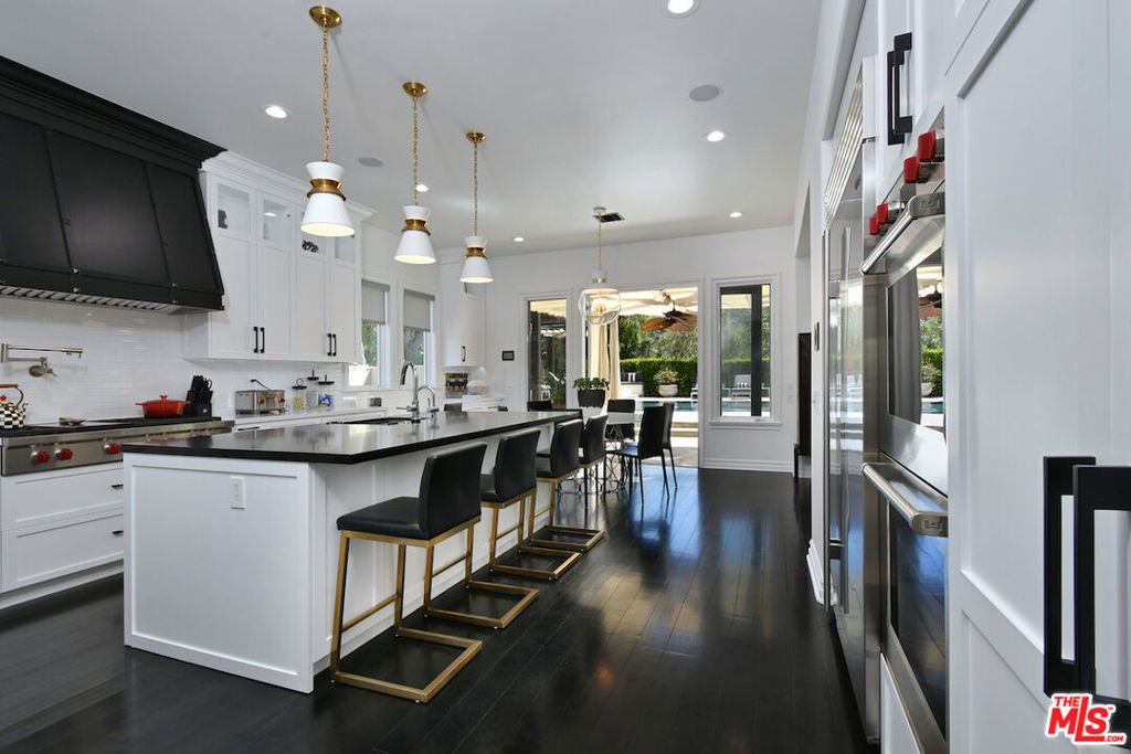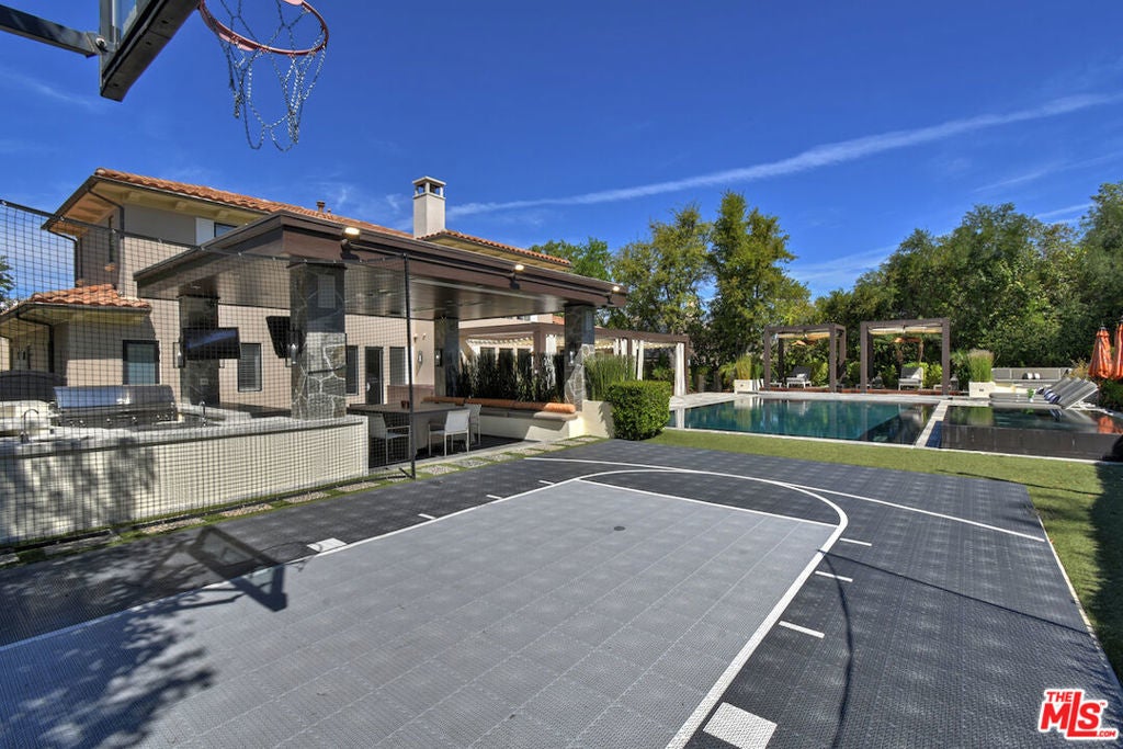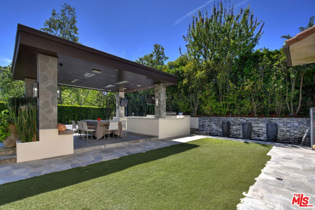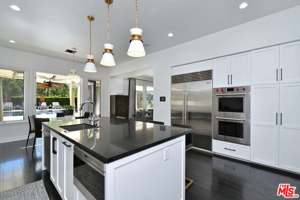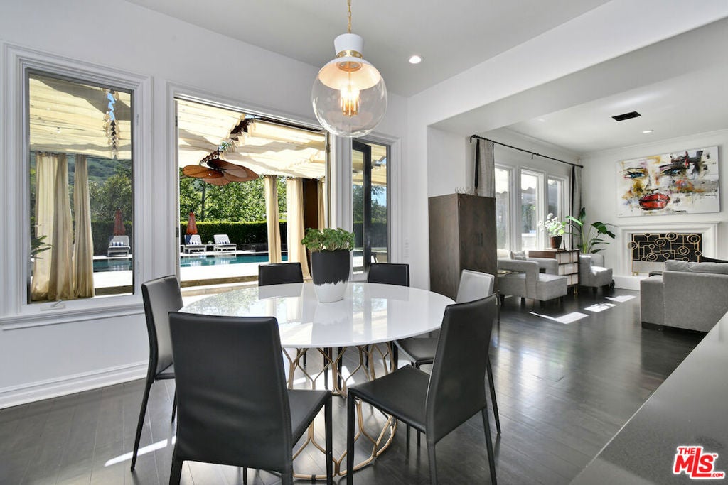 Located on a rare, tree-lined cul-de-sac within The Oaks of Calabasas, one of Southern California's most prestigious 24-hour guard-gated communities, this exceptional estate offers a level of privacy and tranquility seldom found. With no through traffic, the setting is remarkably quiet and serene, creating a true sanctuary environment. Set against unobstructed panoramic views of the Santa Monica Mountains, the home captures breathtaking natural beauty from sunrise to sunset, elevating everyday living into a resort-like experience. Spanning approximately 6,000 square feet on an expansive 22,000+ square foot lot, this stunning two-story residence offers 5 bedrooms and 7 bathrooms, seamlessly blending timeless architecture with elevated contemporary design. At the heart of the home is a state-of-the-art chef's kitchen featuring premium Wolf appliances, a generous center island, and a sunlit breakfast area all flowing effortlessly into the spacious family room with fireplace and French doors that open to the outdoor living spaces. The formal living room showcases soaring ceilings and a fireplace, while the elegant dining room provides the perfect setting for both intimate dinners and large-scale entertaining. Thoughtfully designed for both comfort and functionality, the home also features a charming courtyard with fireplace, executive office, gym area, utility room, and a private downstairs suite with its own living area ideal for guests or extended stays. Upstairs, a grand landing leads to an additional family room. The luxurious primary suite is a true retreat, complete with a sitting area and fireplace, a spa-inspired "Four Seasons" style bathroom with oversized shower, and a bespoke walk-in closet. Three additional en-suite bedrooms offer generous proportions and refined comfort.The resort-style backyard is a true showpiece, evoking the ambiance of a private Thai-inspired Four Seasons-style retreatperfect for both vibrant entertaining and peaceful family evenings. A stunning zero-edge pool seamlessly blends into the surrounding landscape, complemented by an oversized spa with high-performance jets and multiple water features enhanced by sophisticated lighting for a dramatic nighttime atmosphere. Designed for elevated entertaining, the outdoor pavilion features a fully equipped kitchen with premium Wolf appliances that flows seamlessly to a built-in Lynx Grills barbecue, creating an effortless transition between indoor and outdoor living. Two cabanas designed as aquatic lounges, a fire pit, sport court, and multiple lounge areas complete the grounds, offering a series of distinct experiences within one extraordinary setting. This is more than a home it is a private resort, a retreat, and a lifestyle defined by elegance, comfort, and unforgettable moments.