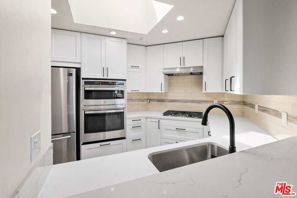 Fantastic, light and bright 3 bd/2.5 ba top floor condo. Large Living Room and spacious upgraded kitchen. En-suite Primary has large tub and good closet space. Updated Kitchen, Bathrooms, and flooring throughout. New appliances and washer/dryer in the unit. Incredible location- walk to Brentwood Village and Westside shopping. Close to UCLA and public transportation. Rent includes 3 parking spots and extra storage!