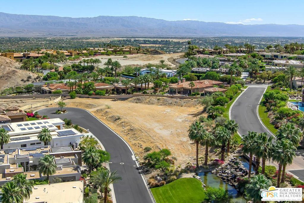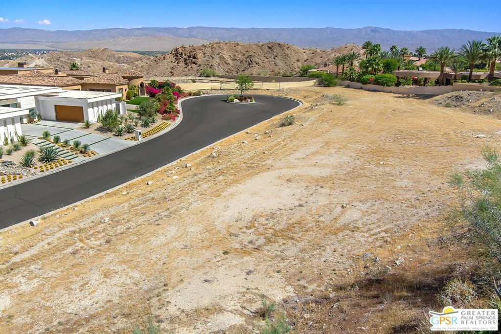 Discover an extraordinary opportunity to build your dream estate at 1 Sierra Vista Drive, situated within the prestigious guard-gated community of Mirada Estates in Rancho Mirage. Spanning approximately 1.29 acres, this expansive homesite offers a rare blend of privacy, space, and breathtaking natural beauty. Perched in an elevated setting, the lot captures sweeping panoramic views of the surrounding mountains, rolling desert hills, and twinkling city lights below. From sunrise over the valley to glowing desert sunsets, this property delivers a constantly changing canvas of stunning scenery in every direction. Surrounded by luxury residences and pristine desert landscaping, the parcel provides an ideal foundation for a custom-designed home that embraces both indoor-outdoor living and the dramatic vistas that define the area. With ample space to create a private retreat complete with resort-style amenities, expansive outdoor entertaining areas, and lush desert gardens the possibilities are truly limitless. Located in one of Rancho Mirage's most sought-after communities, residents of Mirada Estates enjoy tranquility, exclusivity, and proximity to world-class golf, fine dining, and upscale shopping throughout the Coachella Valley. Residents of Mirada Estates enjoy an added layer of resort-style living with access privileges and preferred benefits at The Ritz-Carlton, Rancho Mirage. From world-class dining and spa services to exclusive amenities and special homeowner discounts, this unique partnership enhances everyday living with the elevated experience of a five-star resort just moments away. This is a rare chance to secure a premier piece of land in an exceptional location where vision, luxury, and the beauty of the desert come together.