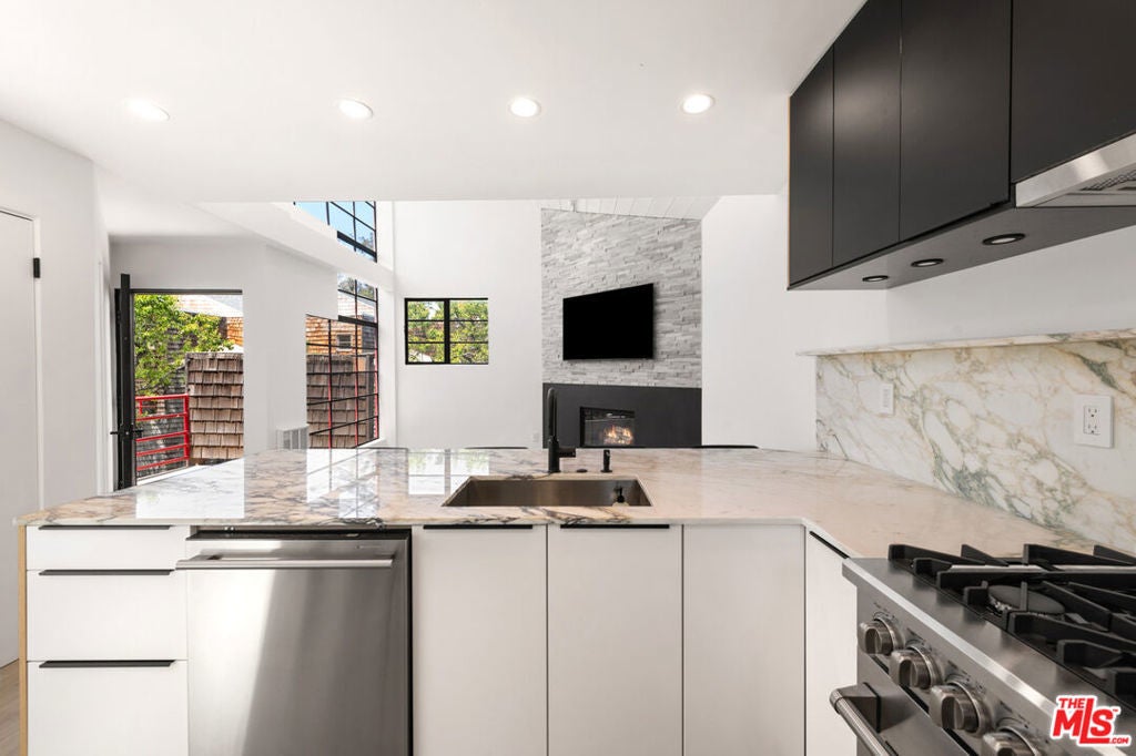 Showings start May 1. Unit available June 15. Contemporary inside and out, this Point Dume ocean-view condo features high ceilings, wood floors, lots of light, and a coveted key to famous Little Dume beach. Entirely updated with sleek architectural detailing, every room feels spacious and inviting. Improvements include new wood floors throughout, new stairs, a stunning new living room fireplace and soaring chimneypiece, new light fixtures, fully updated bathrooms, and a gorgeous chef's kitchen, completely remodeled with marble countertops and backsplash, bar seating, new cabinets, and brand-new, top-quality appliances. The entry level has two bedrooms, both with garden-view windows, one with peekaboo ocean views. The full bath has dual sinks, a treetop-level window, and an elegant, new, spa-style marble and glass shower. The upper level is a bright, ocean-view great room that comprises kitchen and living room areas complete with fireplace, very high ceiling, floor-to-ceiling windows, and an ocean-view deck with room for barbecues and lounging. There is also an updated powder room on this level. The residence includes covered parking for two cars below the unit. Convenient to the Point Dume Plaza center, iconic surfing beaches, wonderful hiking trails, and everything else that Malibu has to offer, this immaculate modernist condo is inviting, refined, and perfectly matched to today's lifestyle. Ability/option to have a second beach key. Option for fully furnished or unfurnished.
