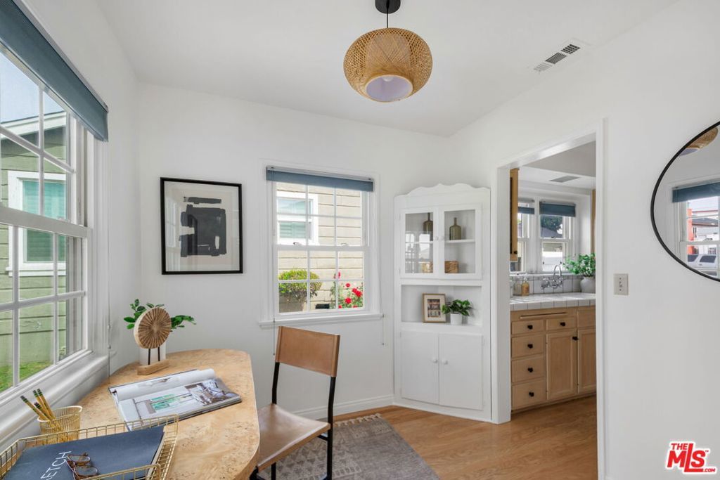 Discover a home that effortlessly blends warmth, functionality, and lifestyle in the heart of the highly sought after View Heights community. This beautifully maintained single level residence offers 2 bedrooms and 1 thoughtfully updated bathroom, all set in a location that keeps you connected to everything from metro access to shopping, dining, and major freeways. Step inside to a sun drenched living room that instantly feels like home, complete with a charming fireplace that creates the perfect setting for both relaxing evenings and lively conversations. A large bay window frames a serene neighborhood view, inviting in natural light and offering the perfect spot to start your day with coffee in hand. The layout flows seamlessly into a formal dining room designed for memorable gatherings, while the fully equipped kitchen opens to a cozy breakfast nook that easily doubles as a stylish and functional home office. Practicality meets comfort with a dedicated laundry room featuring a washer and dryer along with added pantry storage. Both bedrooms are generously sized, and the updated bathroom is designed with intention, offering a separate tub and shower for a spa like experience at home. Step outside to a spacious wood deck that leads to the private backyard retreat perfect for entertaining, gardening, or simply enjoying the California sunshine. A long driveway leading to the detached 2 car garage provides ample parking and convenience. This home has been thoughtfully upgraded with updated electrical and plumbing, newer HVAC, a camera alarm system, fresh interior and exterior paint, new fencing, modern lighting, xeriscaped landscaping, and a bolted foundation for added peace of mind. The outdoor space is truly something special, featuring an abundant garden filled with passion fruit, a giant fig tree, fuyu persimmon, and a unique four in one apple tree. Raised garden beds offer a thriving selection of asparagus, fennel, strawberries, broccoli, tomatoes, kale, hot peppers, and a variety of herbs including lavender, rosemary, thyme, marjoram, oregano, Thai basil, Italian parsley, curly parsley, dill, and cilantro. This is more than just a home, it's a lifestyle opportunity that checks every box and then some, so if it feels right, don't think twice!