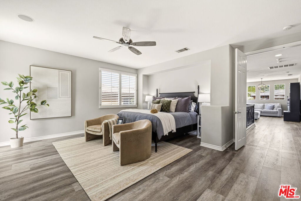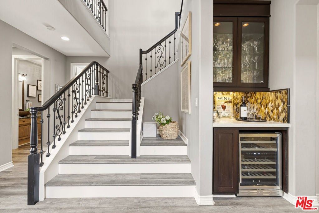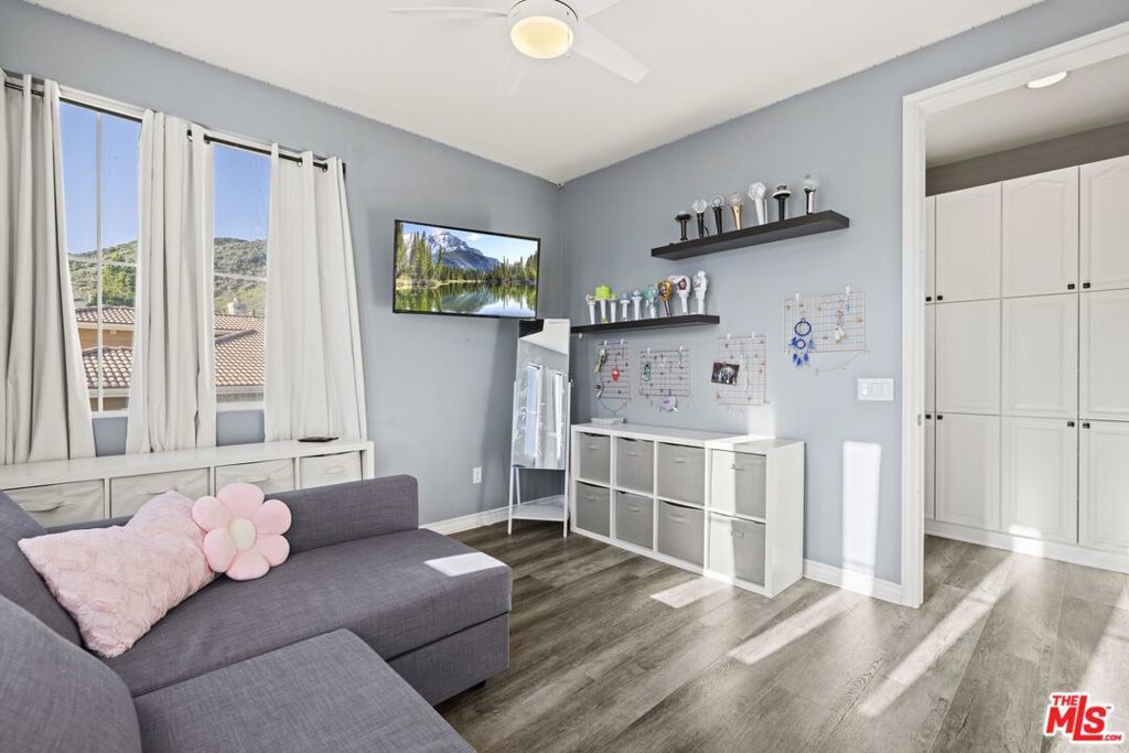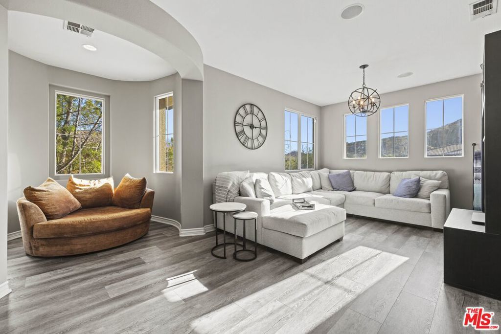 Welcome to an exquisite Southern Oaks retreat, where luxury meets family-friendly living in one of Santa Clarita's most coveted neighborhoods! This magnificent 5-bedroom, 4-bathroom residence, spanning 3,835 square feet, offers an unparalleled living experience, perfectly complemented by the nearby award-winning schools! Step inside to the abundance of natural light, soaring ceilings and newer wood-like flooring. The open floor plan offers flexibility in design and placement, including a convenient downstairs bedroom and bath, ideal for multi-generational living, office, or guest room. Entertaining is a breeze with a separate dining room, dry bar, and spacious living room featuring a cozy fireplace with built-ins and is open to the well-appointed kitchen. The kitchen is a true chef's dream featuring expansive granite countertops, a central island perfect for entertaining, a walk-in pantry, and premium double ovens. This space seamlessly flows into inviting living areas, making it the heart of your home for everyday moments and grand celebrations alike. Upstairs, discover a versatile loft space, 3 additional bedrooms with 2 bathrooms, plus the spacious primary suite. The primary suite is a true escape, featuring a sunny balcony with backyard views, offering the perfect spot for morning coffee or evening relaxation. The spa-inspired, remodeled primary bath features dual vanities, a soaking tub, a walk-in shower, and two walk-in closets, providing a luxurious escape after a long day. Outside, the backyard is a private oasis designed for ultimate enjoyment. Immerse yourself in the sparkling pool, complete with a waterfall, enjoy the views from the newer covered patio, or host unforgettable gatherings at the built-in BBQ and bar area. The meticulously landscaped grounds provide a resort-like setting, ensuring privacy and endless outdoor fun! Attached 3-car garage plus convenient upstairs laundry room. Close to top-tier public schools, diverse shopping, restaurants, all with the peaceful embrace of nature. Enjoy seamless freeway access while still being moments away from hiking trails, parks, and more! This gorgeous move-in ready home is ready for you!