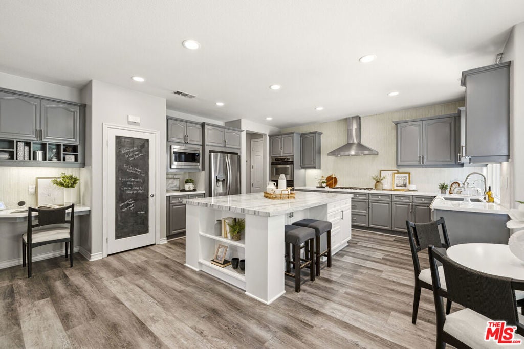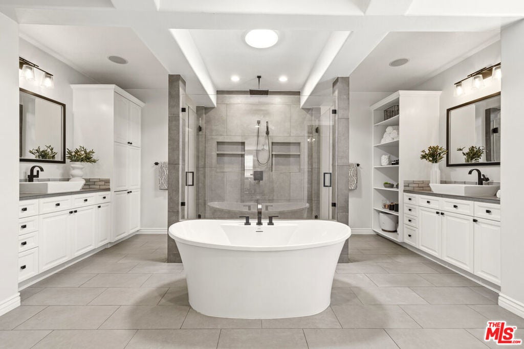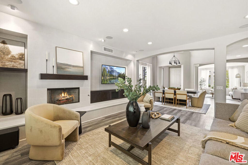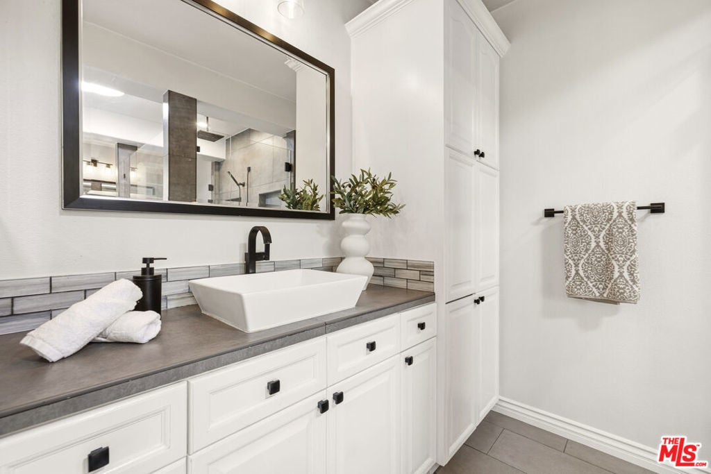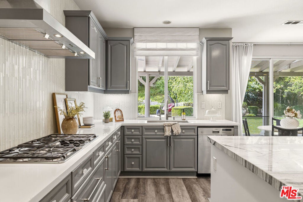 Welcome to an exquisite Southern Oaks retreat, where luxury meets family-friendly living in one of Santa Clarita's most coveted neighborhoods! This magnificent 5-bedroom, 4-bathroom residence, spanning 3,835 square feet, offers an unparalleled living experience, perfectly complemented by the nearby award-winning schools! Step inside to the abundance of natural light, soaring ceilings and newer wood-like flooring. The open floor plan offers flexibility in design and placement, including a convenient downstairs bedroom and bath, ideal for multi-generational living, office, or guest room. Entertaining is a breeze with a separate dining room, dry bar, and spacious living room featuring a cozy fireplace with built-ins and is open to the well-appointed kitchen. The kitchen is a true chef's dream featuring expansive granite countertops, a central island perfect for entertaining, a walk-in pantry, and premium double ovens. This space seamlessly flows into inviting living areas, making it the heart of your home for everyday moments and grand celebrations alike. Upstairs, discover a versatile loft space, 3 additional bedrooms with 2 bathrooms, plus the spacious primary suite. The primary suite is a true escape, featuring a sunny balcony with backyard views, offering the perfect spot for morning coffee or evening relaxation. The spa-inspired, remodeled primary bath features dual vanities, a soaking tub, a walk-in shower, and two walk-in closets, providing a luxurious escape after a long day. Outside, the backyard is a private oasis designed for ultimate enjoyment. Immerse yourself in the sparkling pool, complete with a waterfall, enjoy the views from the newer covered patio, or host unforgettable gatherings at the built-in BBQ and bar area. The meticulously landscaped grounds provide a resort-like setting, ensuring privacy and endless outdoor fun! Attached 3-car garage plus convenient upstairs laundry room. Close to top-tier public schools, diverse shopping, restaurants, all with the peaceful embrace of nature. Enjoy seamless freeway access while still being moments away from hiking trails, parks, and more! This gorgeous move-in ready home is ready for you!