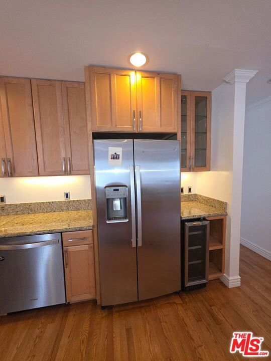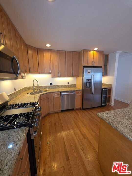Live the Venice lifestyle in this bright and spacious 3-bedroom 1-bathroom apartment surrounded by palm trees and coastal charm. Tucked into a lush setting, this home captures the easygoing beachside feel Venice is known for. Inside, you'll find hardwood floors throughout and a beautifully updated chef's kitchen with granite countertops, stainless steel appliances, and plenty of space to cook, gather, and unwind after a day by the ocean. The layout is open and inviting with great natural light, generously sized bedrooms, and ceiling fans to keep things cool. An in-unit washer and dryer adds everyday convenience while maintaining the relaxed flow of the home. Step outside and you're immersed in a classic Venice setting with greenery, ocean air, and that unmistakable laid-back energy. Parking is available on a separate lease. Tenants are responsible for all utilities.