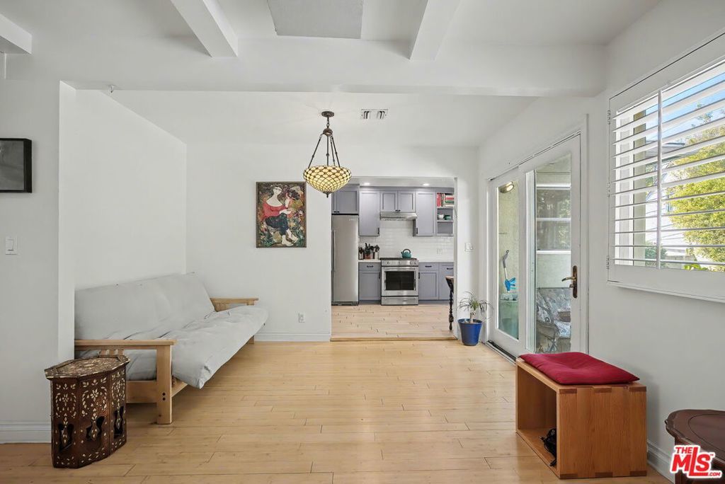 Built in 1949 and held by the same owner for decades, this Folk Victorian fourplex sits on Eastborne Avenue in the 90024 zip code, three blocks south of Wilshire and about a mile from UCLA's main campus. The board-and-batten exterior, decorative porch brackets, and diamond-paned windows give it a character that stucco apartment buildings in this area simply don't have. The neighborhood generates consistent tenant demand from graduate students, hospital staff, faculty, and professionals tied to the Century City office corridor. There is no court confirmation requirement for this estate sale. It can close on a conventional timeline. The unit mix consists of two 2-bedroom units and two 1-bedroom units, totaling 6 bedrooms and 4.5 bathrooms. Three units are occupied by long-term tenants. The fourth unit, a 2-bedroom/1.5-bath at the rear of the building, is vacant and available for immediate occupancy. It has its own private patio with a spacious grassy yard and BBQ area, the kind of private outdoor space that is genuinely rare in Westwood rentals. For a buyer who wants to live in one unit while the other three generate income, the three occupied units nearly cover the monthly carrying costs. Parking is eight spaces total: four private garages and four tandem driveway spots. For a Westwood fourplex, that number is hard to find.