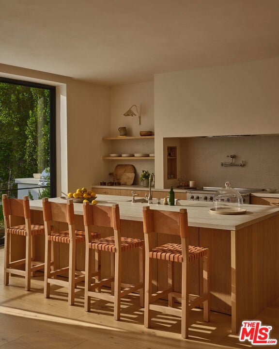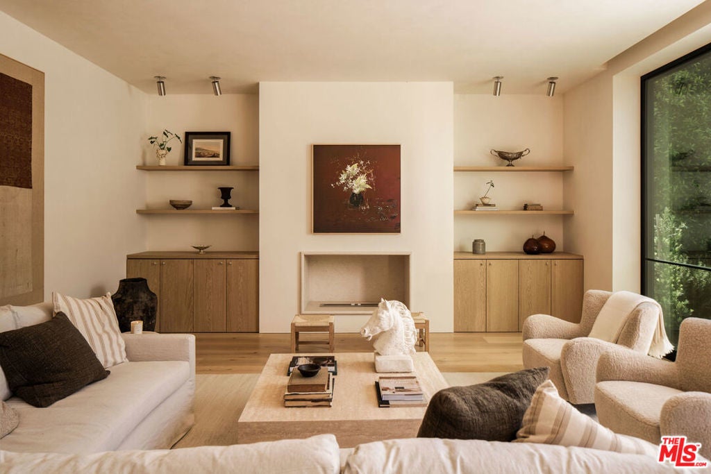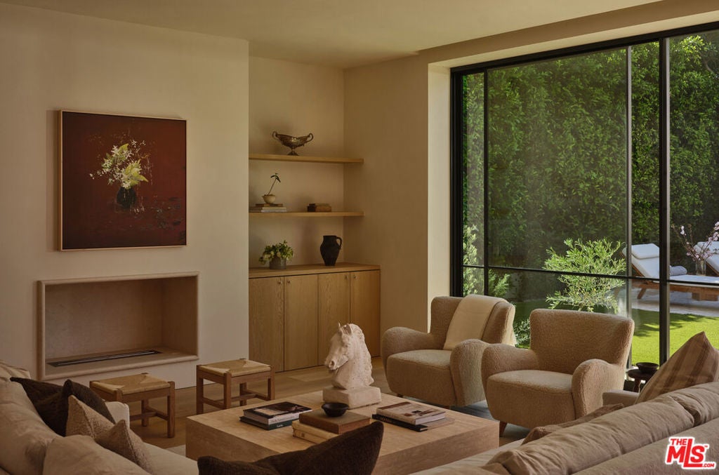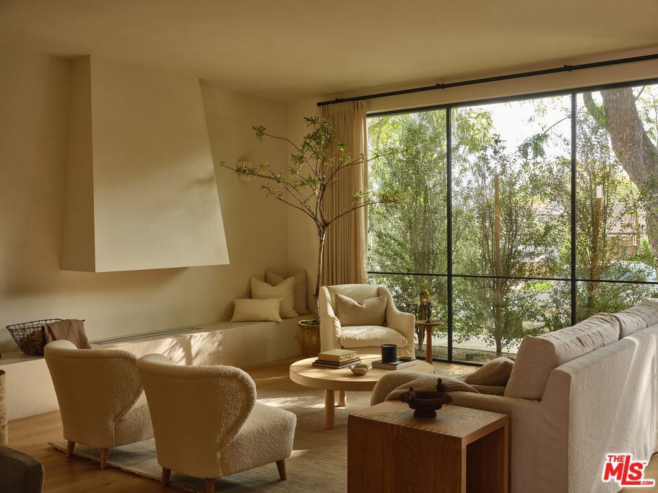 Grounded, elegantly livable, and easy to settle into, Ventura Canyon was designed and built by SLS Properties Inc., with interiors by Jenni Kayne. The home leads with material, proportion, and quiet confidence, featuring a restrained palette of plaster, warm wood, and veined marble layered in a way that feels naturally cohesive. At the center of the home, a sunlit atrium elevates the space and brings in an abundance of natural light, creating a sense of openness and connection throughout the main living areas. The layout is both thoughtful and functional, offering an en suite office on the main level and four en suite bedrooms upstairs. The spacious primary suite is generous in scale and features dual balconies along with a beautifully appointed bath complete with a floating vanity and mirror, soaking tub, large shower, and dedicated makeup stationan everyday retreat that feels like a spa. On the main level, large sliding doors create an effortless connection to the outdoors, with a pool and inviting spaces designed for both everyday living and entertaining. A fully separate ADU offers two additional en suite bedrooms, providing ideal flexibility for guests, extended family, or creative use. Though newly built, the home carries a sense of warmth and permanence close to the city, yet just removed enough to feel private, comfortable, and quietly refined.