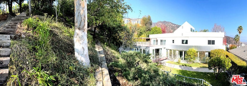 Welcome to 2136 Rimcrest Dr., Glendale, CA 91207. Stunning Modern Oasis with Breathtaking Views!! Situated atop the prestigious Glendale Hills, this two-story modern residence offers a harmonious blend of luxury and comfort across an impressive 3,855 sq of living space on a 14,724 sq lot. From the moment you enter through the grand double entry, you'll be captivated by the bright and inviting entryway bathed in natural light and the open floor plan that enhances the home's spacious and airy feel. This home features four generously sized bedrooms and 3.5 bathrooms, including two expansive primary bedrooms. The one of the primary suites is a true retreat, with private decks or patios offering breathtaking views of the property and the iconic Los Angeles skyline. The spa-like primary bathroom boasts luxurious touches, such as a central soaking tub under a skylight, perfect for unwinding, and large walk-in closets for ample storage. The main level boasts a huge living room with a soaring high ceiling, a modern kitchen, and a large dining room. Step into the partially enclosed backyard, a large recreation room, a true entertainer's paradise, with sleek modern windows and sliding doors, and beautifully landscaped gardens. The backyard's private hillside offers panoramic views of downtown LA, while a serene bench at the top of the hill provides the perfect spot to relax. This unique home must be seen to fully appreciate its exceptional design, views, and layout. Don't miss this incredible opportunity!