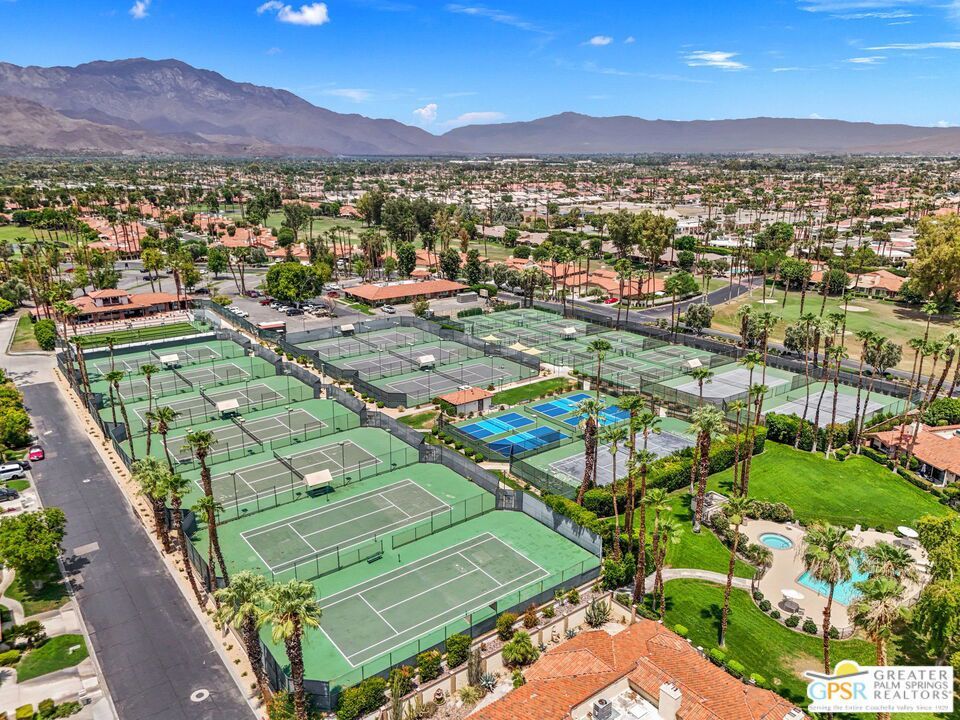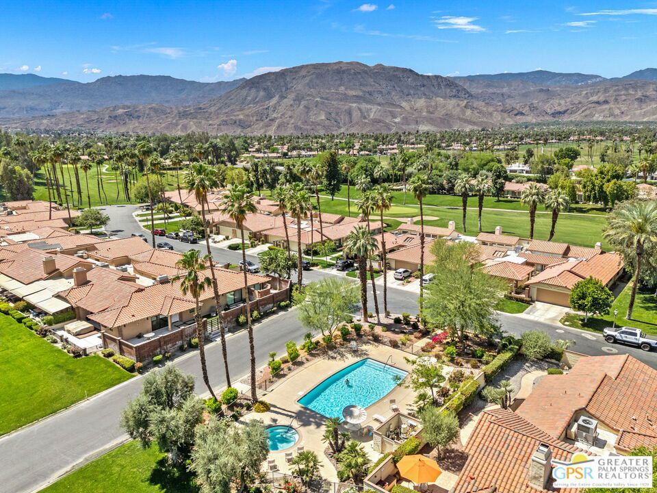 Fabulous Panoramic Mountain Views! Beautifully furnished 2-bedroom, 2-bath condominium filled with light and style. Designer finishes and tasteful furnishings create a warm, elegant feel throughout. The open-concept kitchen, living, and dining areas feature clerestory windows that flood the home with natural light while showcasing spectacular west-facing views of the San Jacinto Mountains and the golf course. Located in the highly desirable Monterey Country Club, residents enjoy 27 holes of championship golf, 37 pools and spas, and numerous tennis and pickleball courts, fitness center, bocce ball courts, and a Clubhouse with fine dining set among beautifully maintained grounds. The condominium offers an opportunity for updating, making this a wonderful chance to add your own personal touches. Perfect as a vacation retreat or full-time home in sunny Palm Desert. Own your piece of Paradise today!