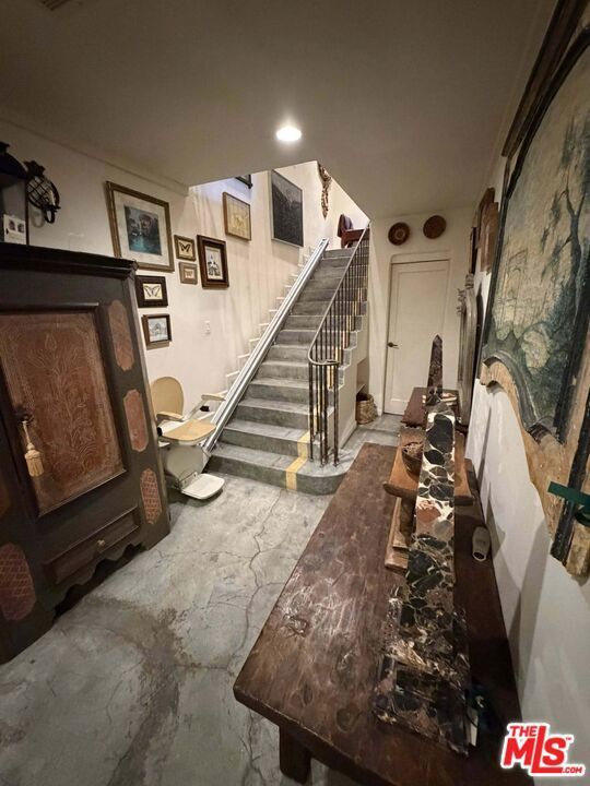 Fantastic live/work space in a historic Art Deco landmark building built in 1939. Once a bank, for the past 25 years, used a showroom for a prominent antique furniture designer. The stunning bow-string truss ceiling dominates the top of the square footage, along with a loft for storage accessible via a sturdy staircase. Another beautiful stone staircase with a wrought iron banister leads up to a wonderfully appointed apartment on the second floor. The living space has three bedrooms, a full bath, a spacious eat-in kitchen with newer appliances and finishes, laundry, and a hidden closet. Parking for numerous vehicles. Unusual space is perfect for a discerning creative buyer.